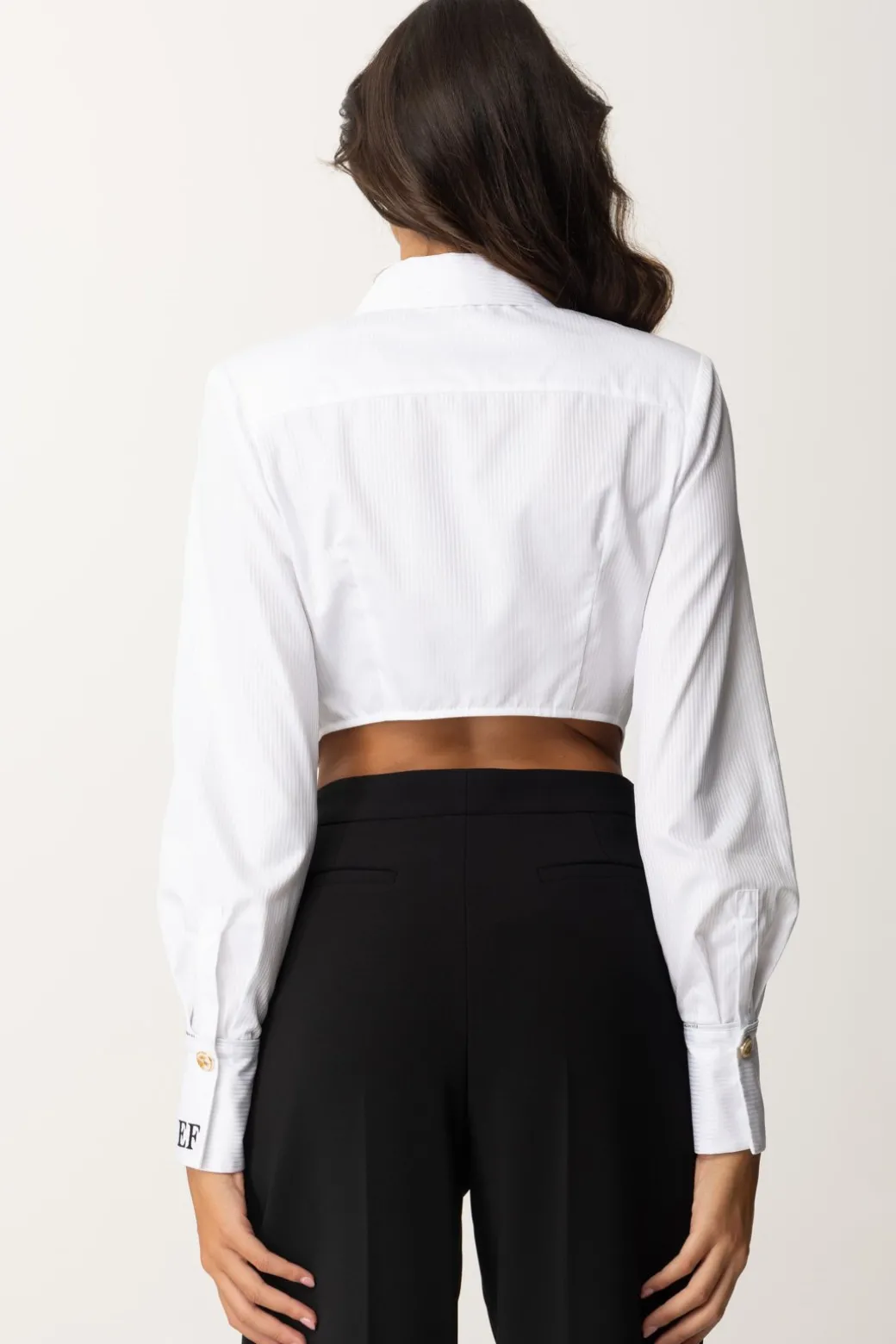Camicia Elisabetta Franchi piena di elementi in direzione femminilità: il taglio crop, le pinces sul davanti e il fondo asimmetrico che valorizza fianchi e punto vita e, ultima nota di stile, il logo EF ai polsini che identificano la tua designer preferita. Perfetta con ogni look, dal più casual al più chic, a cui aggiungere la tua nota personale di carattere.