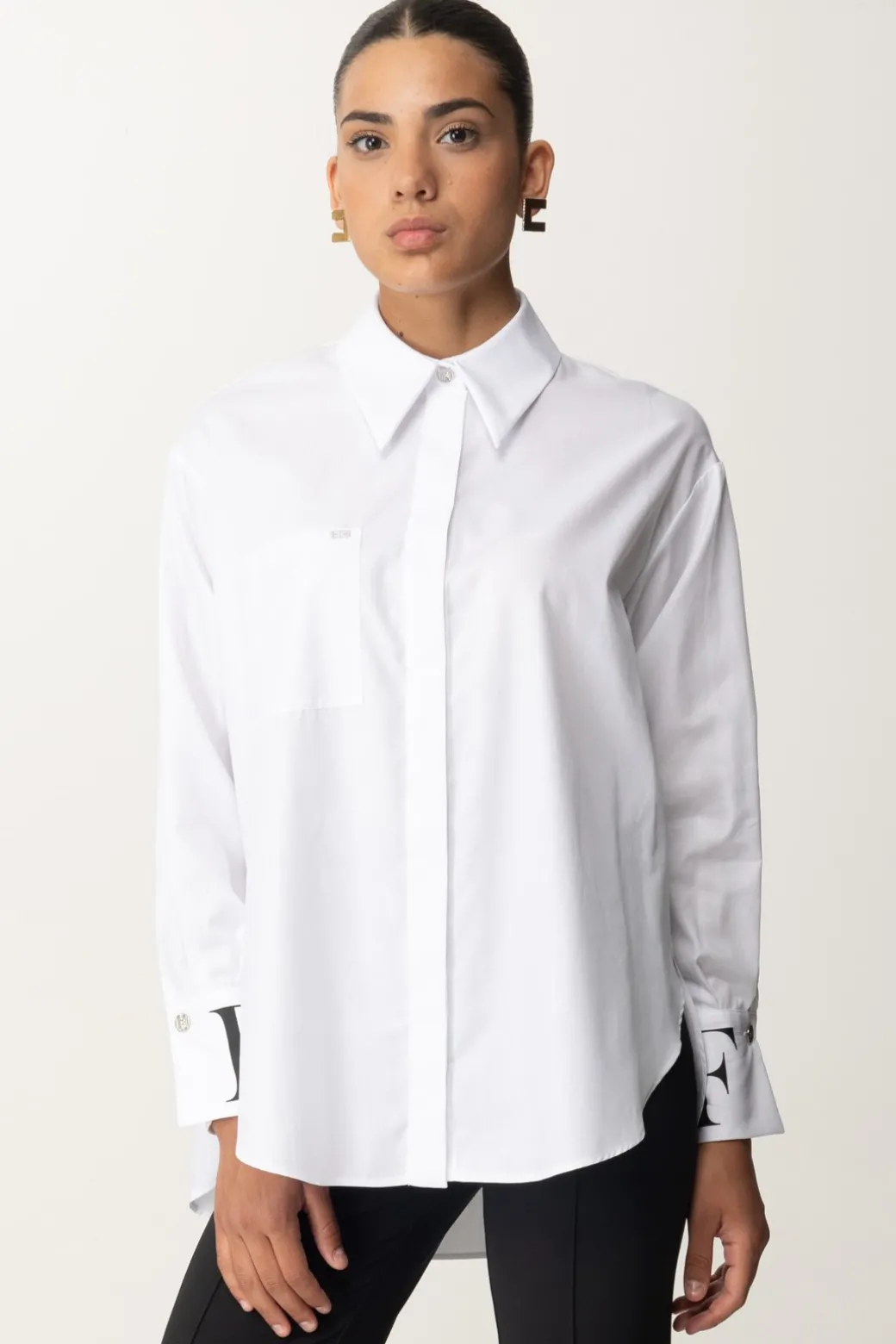 Raffinata e contemporanea camicia Elisabetta Franchi dal fit leggermente over che renderà glamour ogni tuo outfit con il suo tocco di stile: le iniziali della designer a contrasto sui polsini, completati da bottoncino logato in metallo. Perfetta con denim, con gonne a fantasia, con pantaloni eleganti: perfetta sempre!