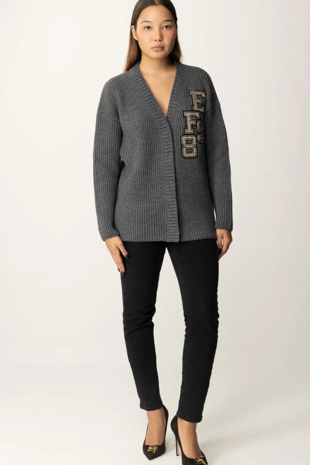 Goditi tutto l’apporto cozy chic di questo cardigan Elisabetta Franchiin lana costa inglese, reso eslcusivo dall’applicazione di patch logo nello stile college di questa collezione con ricamo in perline e canottiglie: un modo semplice – e caldo! – per stare al passo coi tempi.