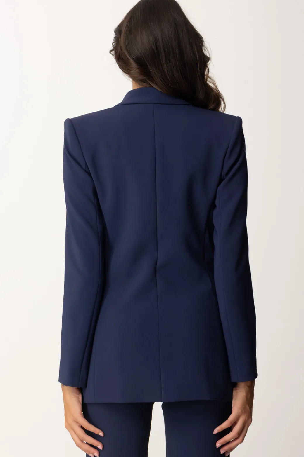 Completo Elisabetta Franchi che non farai fatica ad identificare come tale a partire dalla chiusura della giacca coma placchetta in forma di logo CC in oro. A questa si abbina un pantalone palazzo con spacchi al fondo, anche questi realizzati increpe stretch per un fit comodo e impeccabile. Da evento formale o appuntamento business, non rinunciare alla praticità di un outfit completo e perfettamente combinato.