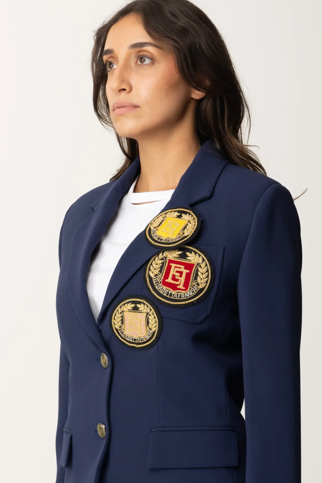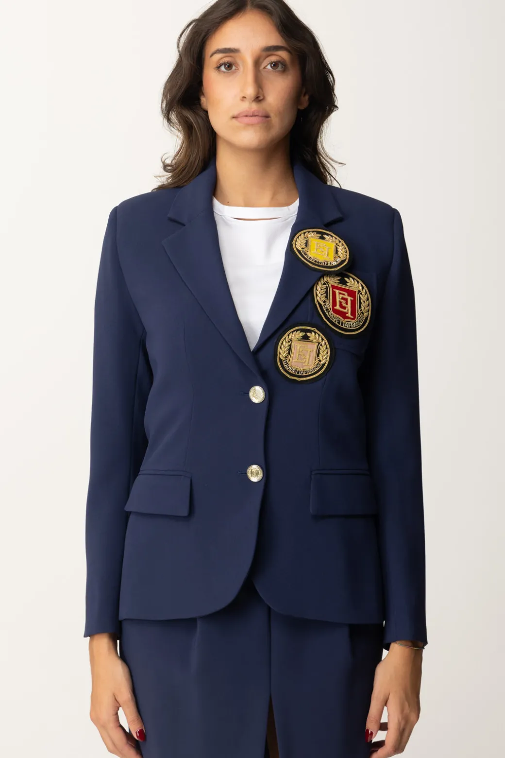 Intramontabile e sartoriale, questa giacca Elisabetta Franchi è perfetta per chi ama sentirsi moderna apprezzando sia lo stile che la versatilità. A renderla unica sono i patch logo di varie misure ricamati sul davanti che aggiungono un dettaglio particolare all’intero look. Indossalo sopra una semplice t-shirt bianca e abbinalo a una gonna o pantaloni coordinati per un look elegante da ufficio.