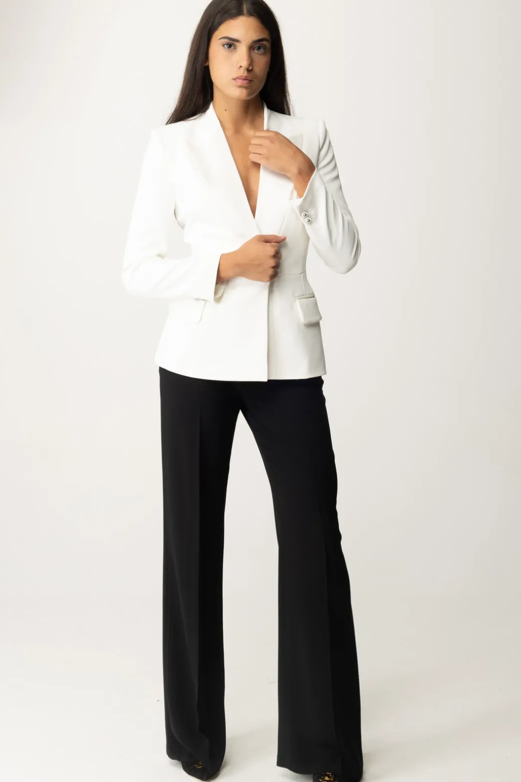 Giacca Elisabetta Franchi in crepe stretch, elevata in eleganza dalla presenza di risvolti a lancia realizzati in raso che la rendono perfetta come capospalla da sera o da cerimonia. Sfiancata e con chiusura a doppio petto, non avrai difficoltà ad abbinarla ai tuoi top e bottom più chic.