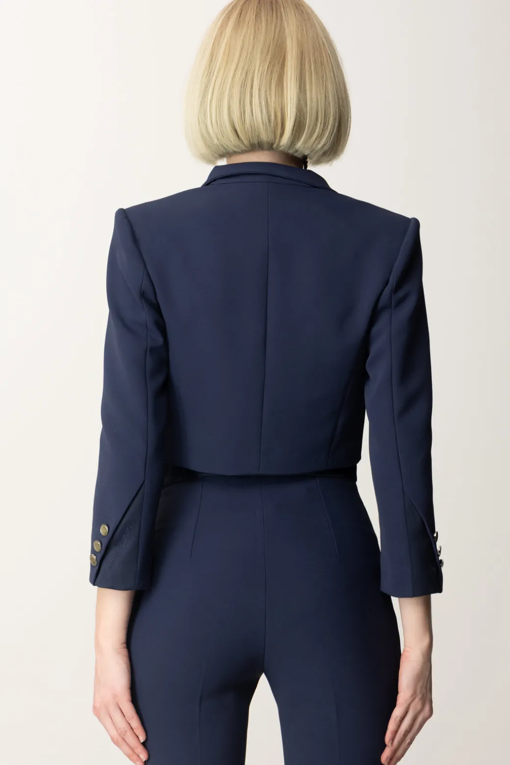 Questa giacca corta Elisabetta Franchi è realizzata in crêpe stretch, offrendo una vestibilità aderente che enfatizza il punto vita Il design monopetto con chiusura a gancetti presenta raffinati revers in raso, conferendo un tocco di eleganza al capo. Le maniche a 3/4 sono arricchite da inserti in raso sui polsini e una delicata ricamatura tono su tono del logo. Ideale per completare outfit sofisticati, questa giacca aggiunge classe e stile a qualsiasi guardaroba, e al contempo un tocco fresco e giovanile.