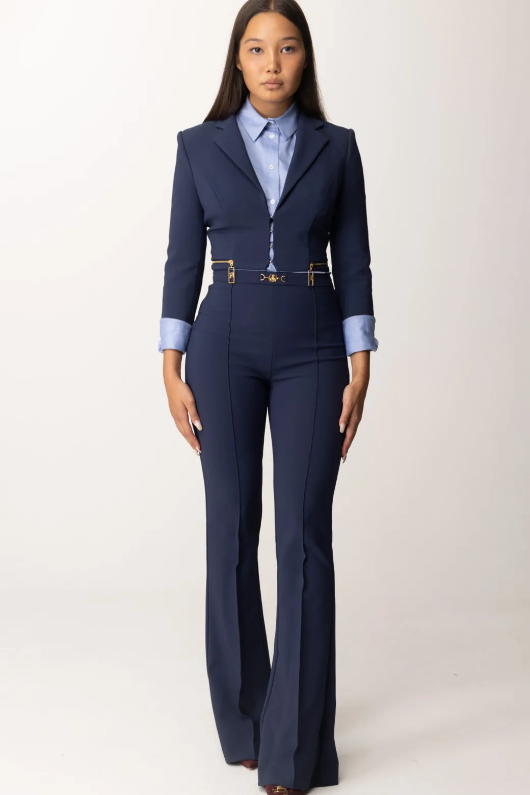 Un po’ un leit motiv di questa collezione, le zip con tiretto logato compaiono anche su questa giacca crop Elisabetta Franchi, intorno al punto vita. Chiusura a gancetti e maniche a tre quarti, un capospalla non banale da abbinare con facilità a tantissimi bottom a vita alta.
