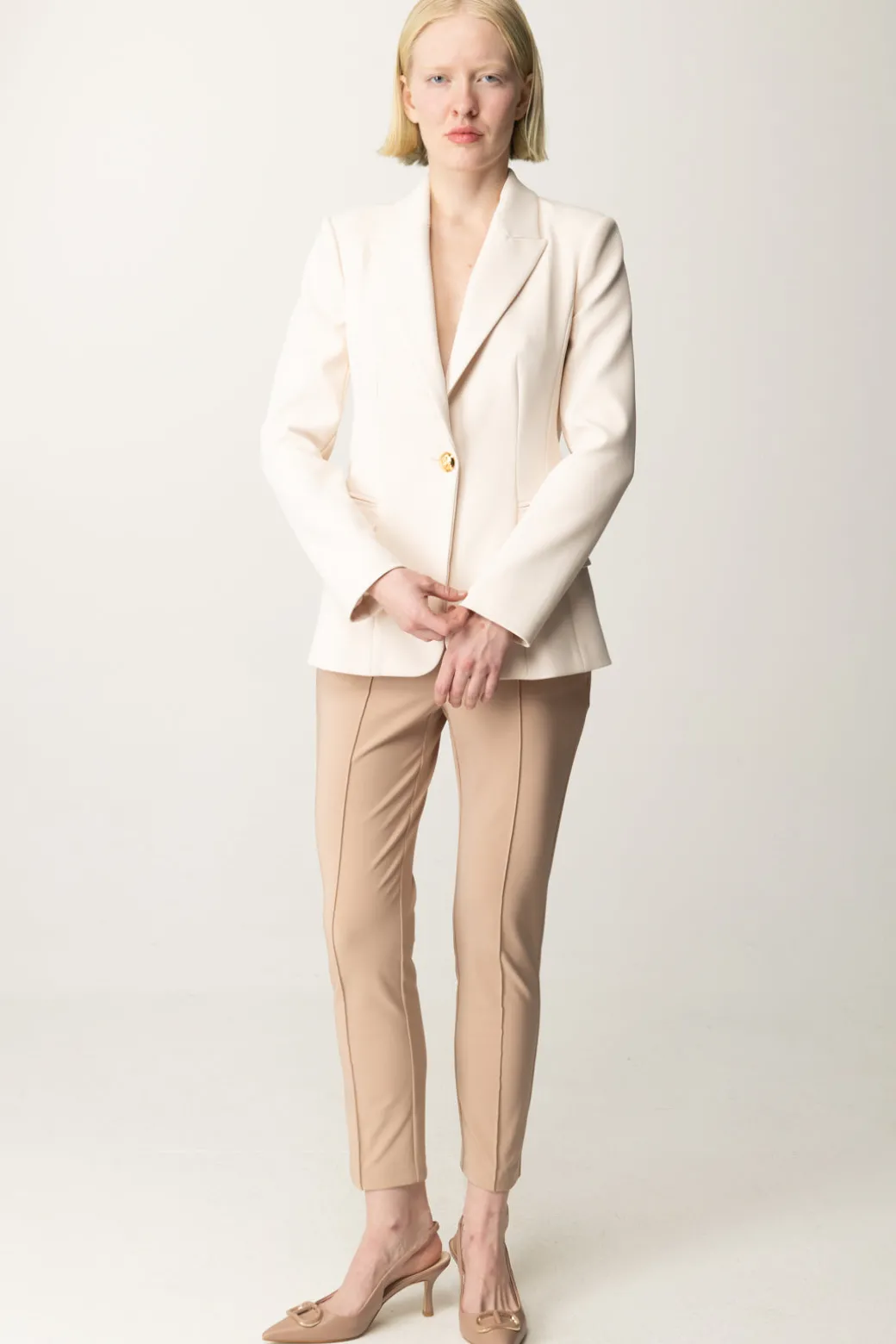 Di giacche non se ne hanno mai abbastanza, specialmente se si tratta di una giacca Elisabetta Franchi, ognuna con il suo design unico e dettagli che la distinguono dal resto del tuo guardaroba. Questo capo è realizzato in crepe, caratterizzato da revers a lancia e chiusura con singolo bottone in metallo gold. Linee pulite e femminili, sfiancata all’altezza delle tasche laterali, sarà perfetta per valorizzare i tuoi outfit business ma anche per dare un tocco chic ai tuoi denim.