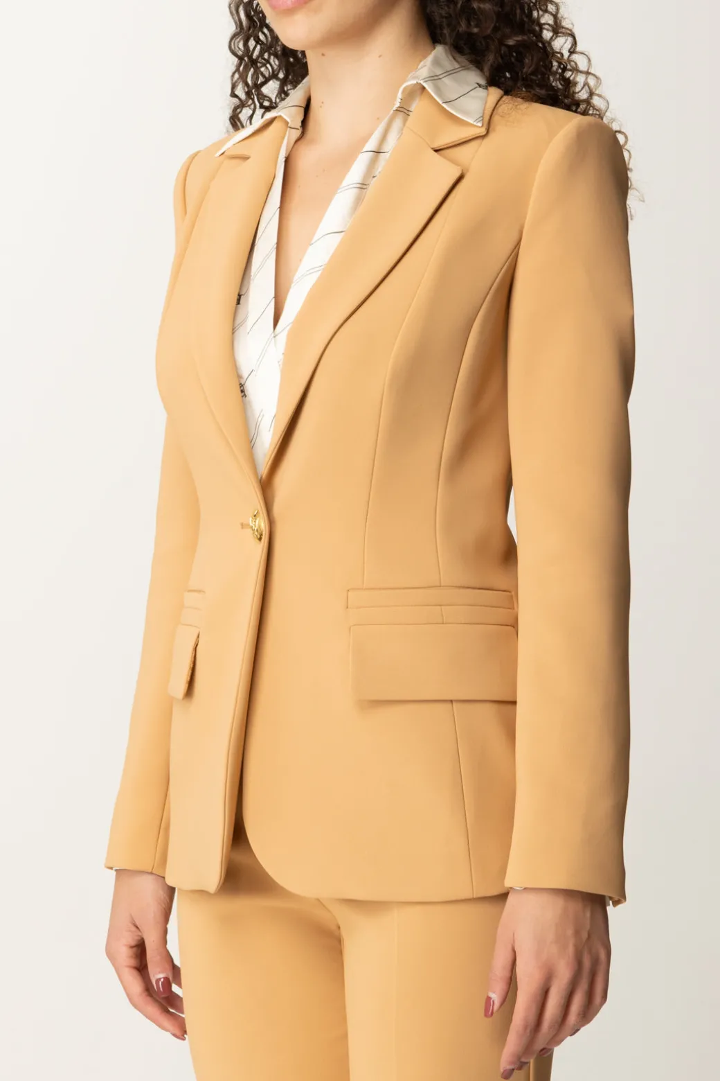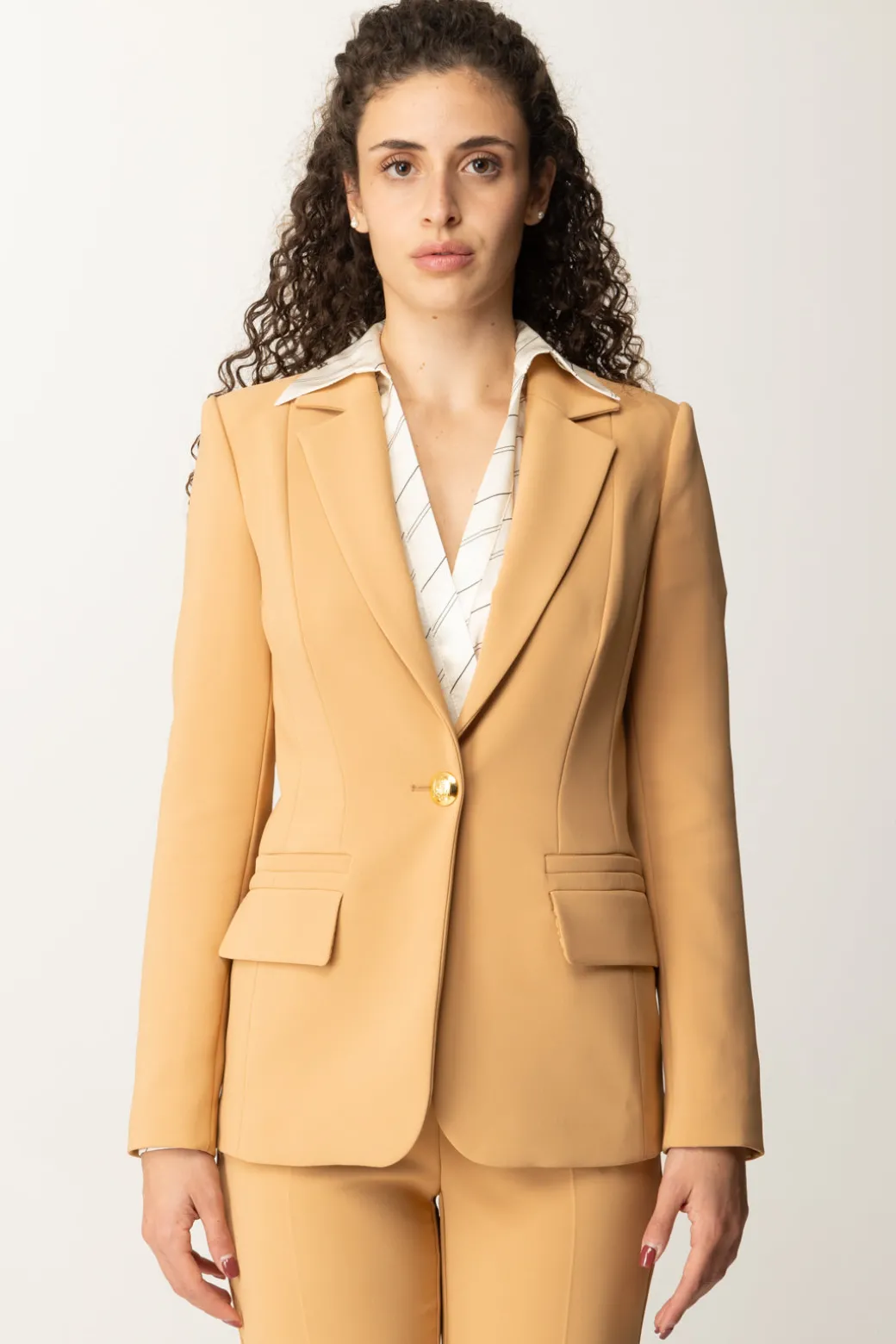 Giacca Elisabetta Franchi in crepe stretch, con cuciture che seguono le linee naturali della tua silhouette e chiusura monopetto con bottone dorato e colletto a lancia: un capo semplice e versatile, che basta per far fare level up a tutti i tuoi outfit.