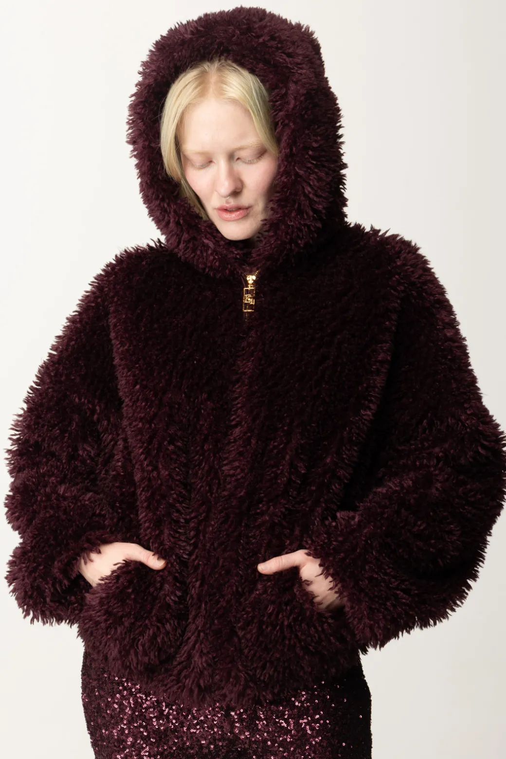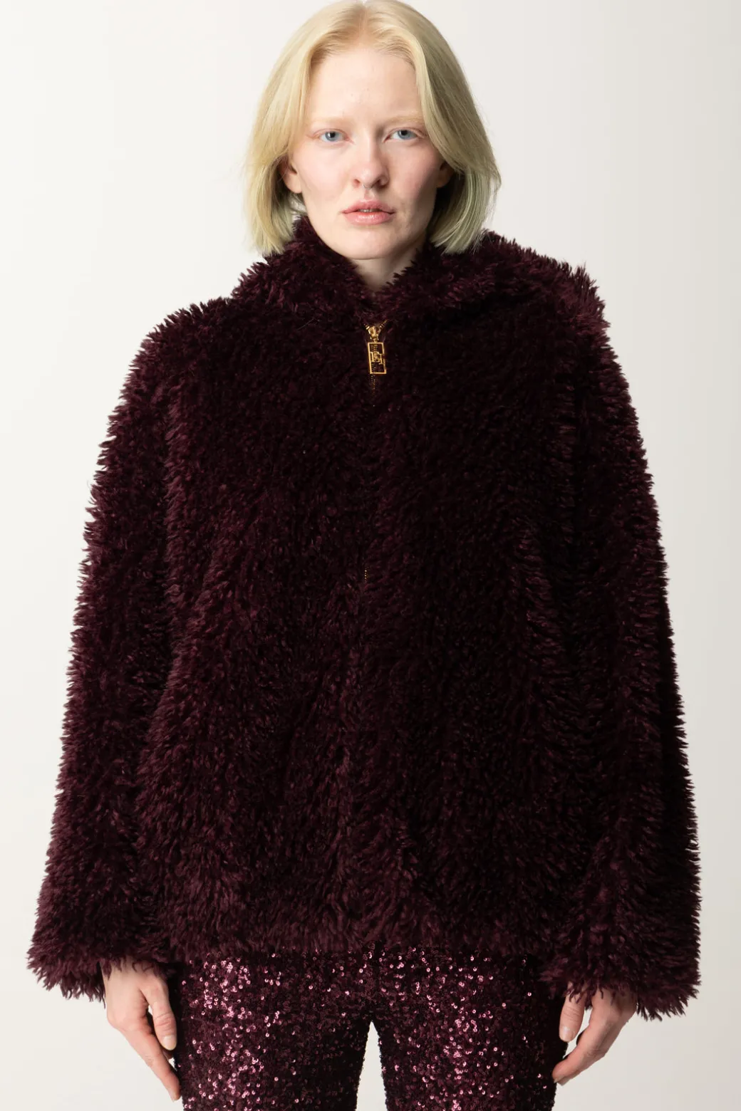 Questo Giubbotto Elisabetta Franchi dal taglio over, è realizzato con un tessuto effetto morbido, imbottito all’interno e completo di comodo cappuccio per il massimo dello stile cozy-chic. La texture morbida e voluminosa crea un effetto ricco e avvolgente, perfetto per i mesi più freddi. Può essere indossato sopra jeans skinny per un contrasto moderno o abbinato a pantaloni per un outfit sofisticato.