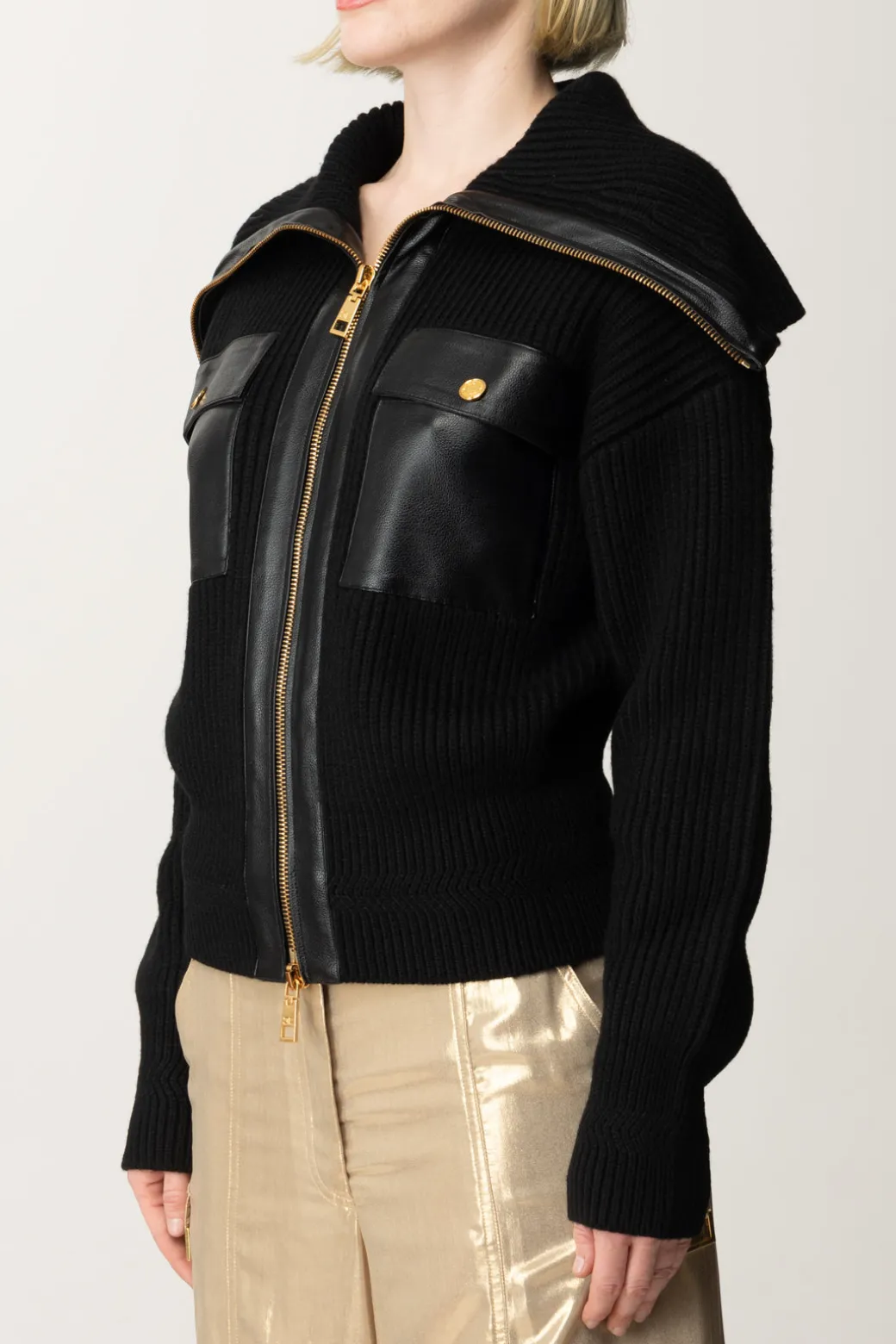 Questo giubbotto in maglia Elisabetta Franchi unisce il calore della maglieria alla sofisticatezza della pelle. Il design è impreziosito da inserti in pelle sui dettagli delle tasche e sulla chiusura con zip dorata. Il colletto oversize aggiunge un tocco contemporaneo e versatile, perfetto per look sia casual che eleganti. Realizzato con materiali di alta qualità, è ideale per affrontare le giornate più fredde con stile.