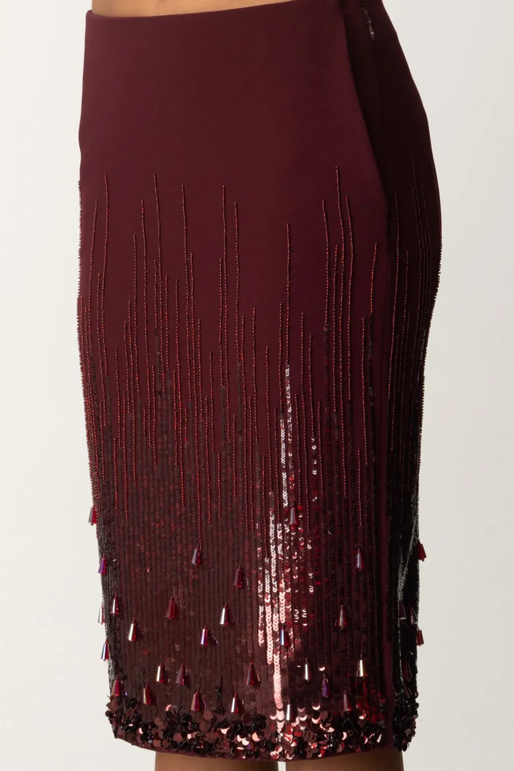 Vivace ed elegante gonna Elisabetta Franchi dal taglio midi, realizzata in crepe ed impreziosita da un ricamo in pailletes e canottiglie in tinta. Mood festaiolo ma anche super chic: saranno i tuoi abbinamenti a fare la differenza, con un capo così esclusivo!