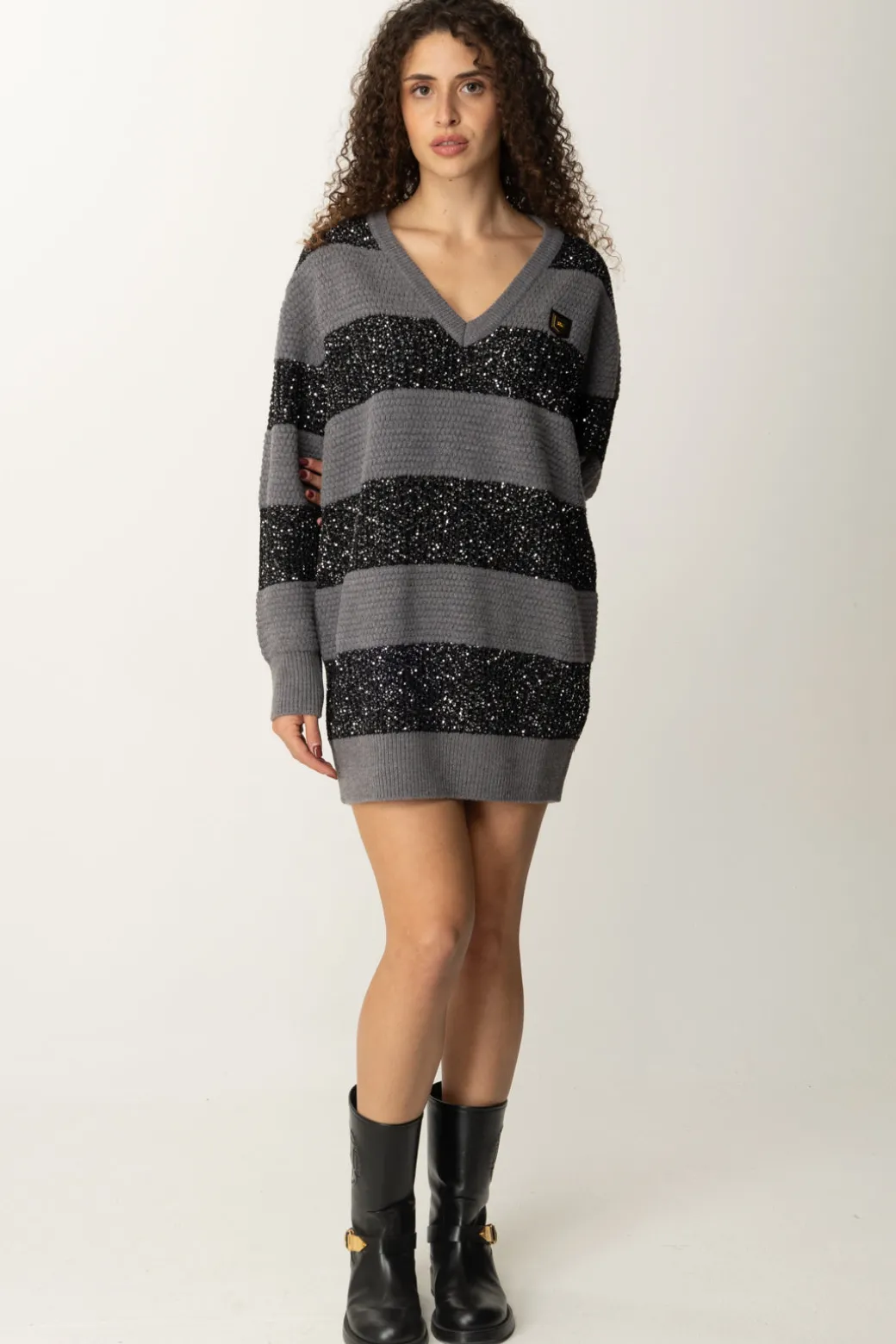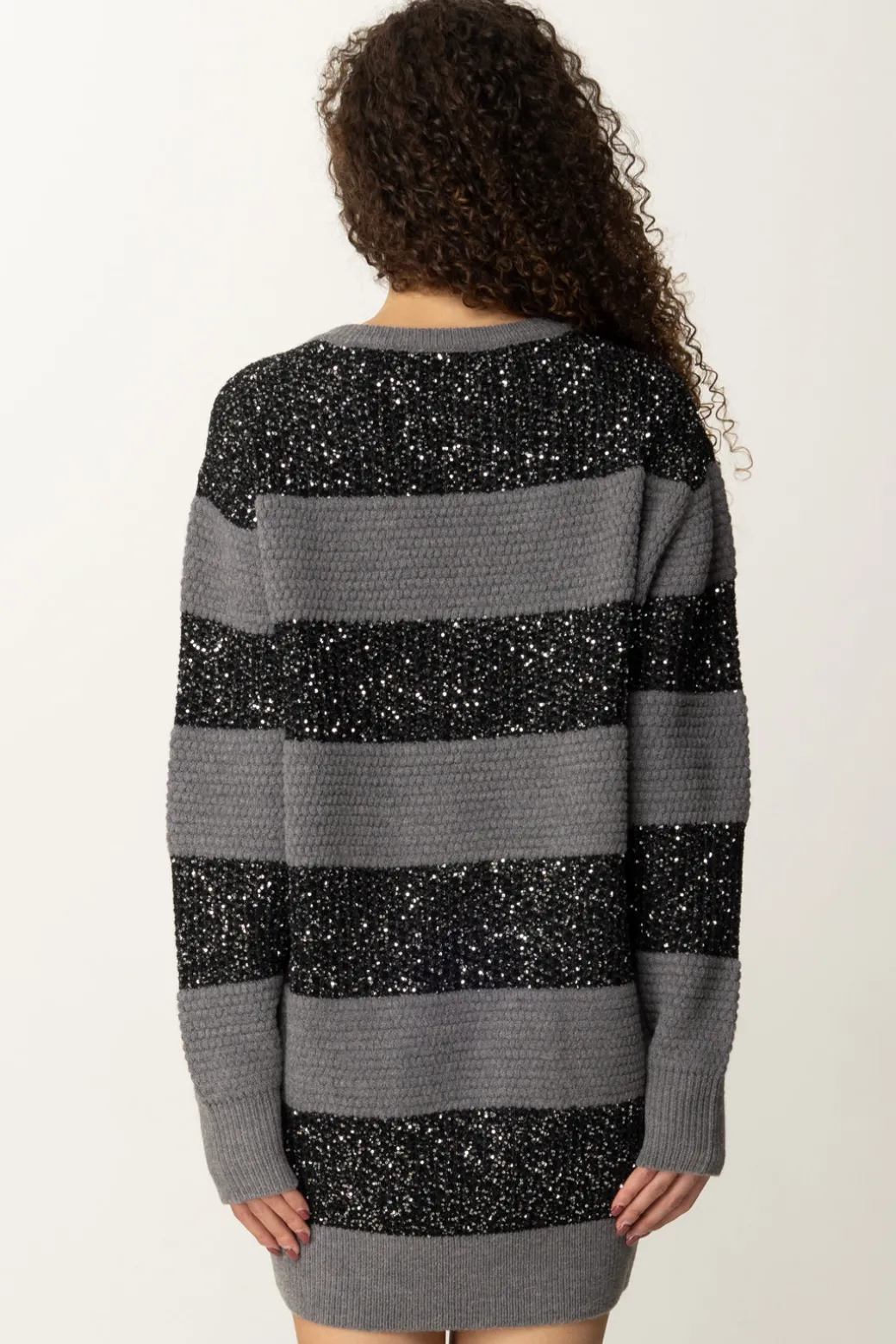 Un Maxi maglione Elisabetta Franchi dal fit over, realizzato in misto lana e dal mood versatile e chic, impreziosito da righe orizzontali che combinano texture lisce e paillettes. La vestibilità morbida lo rende perfetto per outfit casual-chic. Indossalo con stivali alti per un look grintoso, oppure aggiungi una cintura per evidenziare la vita e creare un effetto più femminile. Ideale anche con leggings e accessori bold per un outfit invernale accattivante.