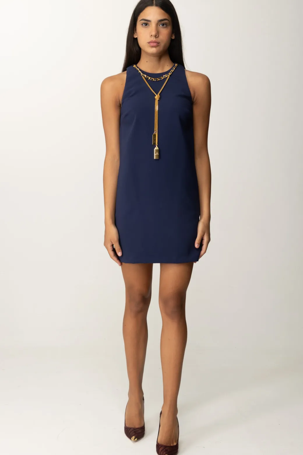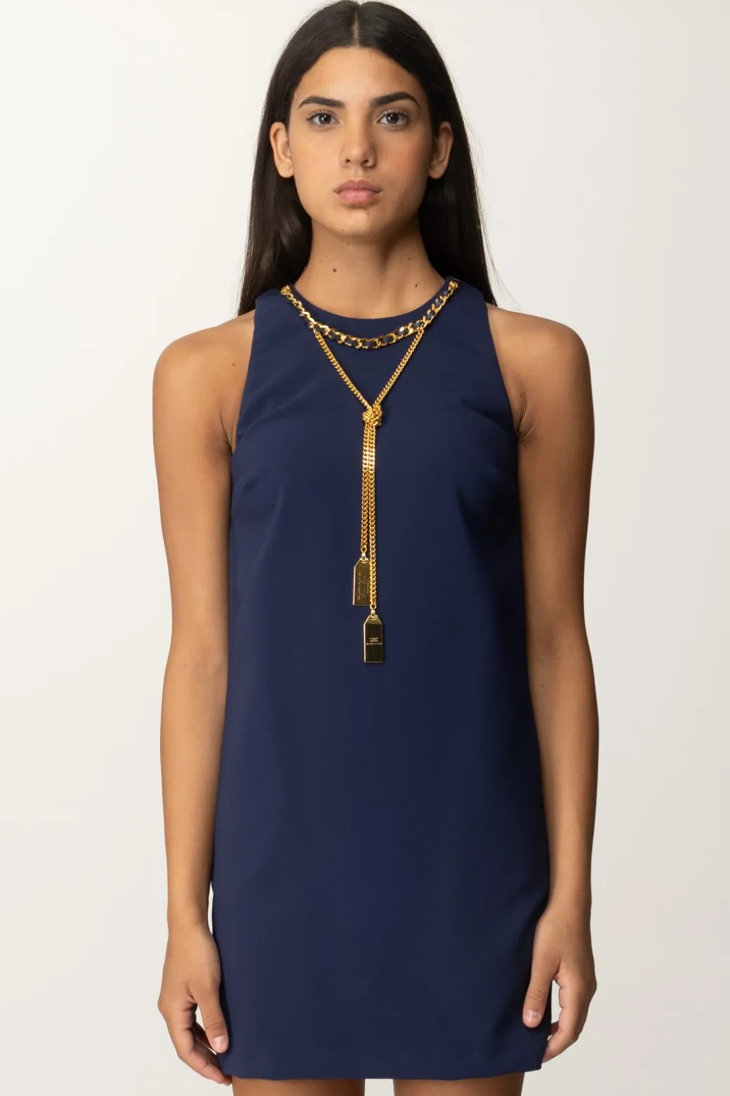Un modello diventato ormai un marchio distintivo del brand: è il boxy dress, nella peculiare interpretazione di abito by Elisabetta Franchi. Classy e femminile, taglio corto e smanicato, realizzato in un tessuto elegante alla vista e al tatto, la versione autunno-inverno 2024 prevede un doppio accessorio al colletto: uno fisso, ovvero la catena gold con infilature, e uno rimovibile, cioè la bella collana con pendenti logati che orna senza appensantire una mise che resta comunque minimal ed impeccabile. Promosso a pieni voti!