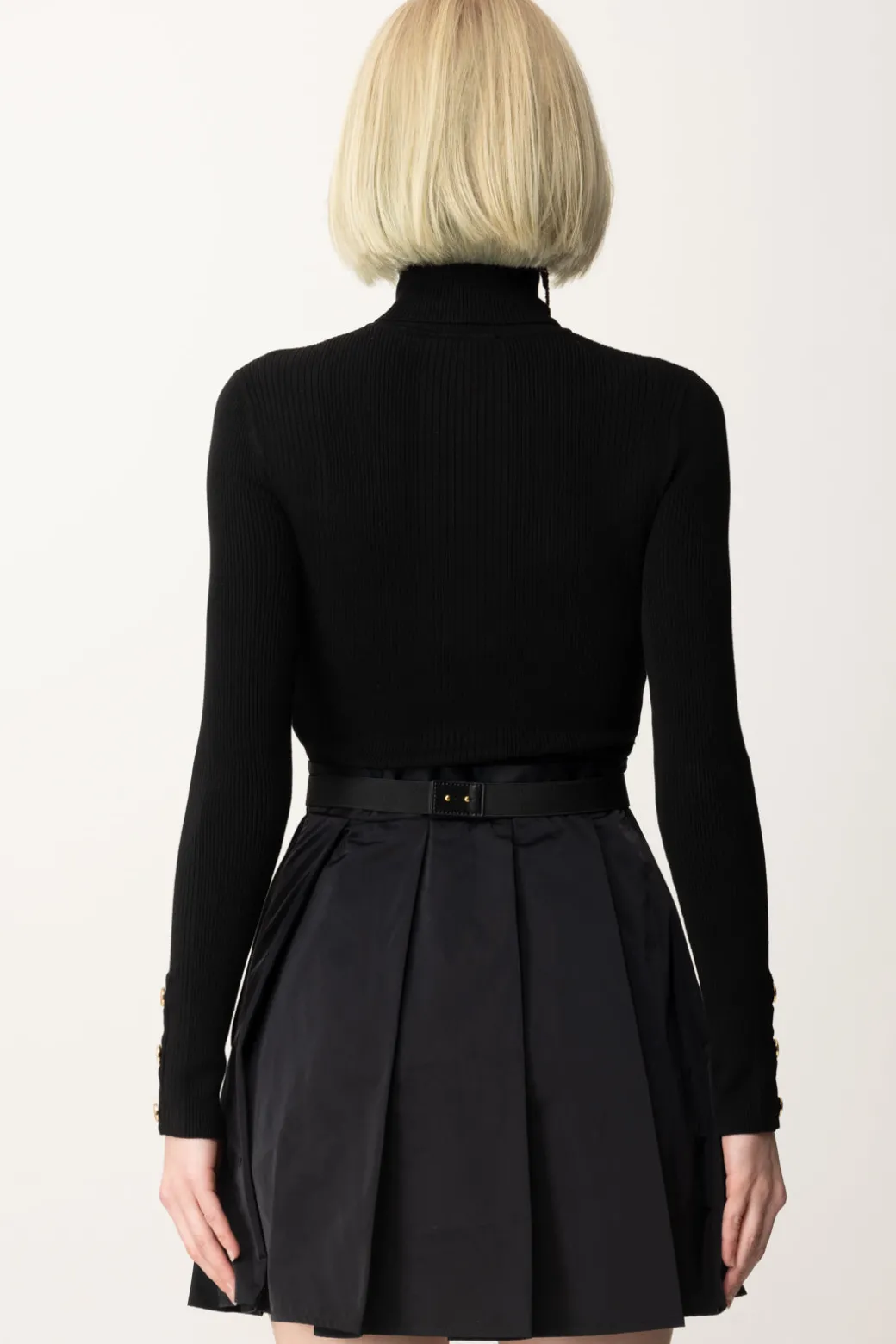 Questo minidress Elisabetta Franchi realizzato in viscosa e seta, composto da una maglia a collo alto e gonna svasata con cintura in vita. Dal mood preppy e chic, da abbinare a stivali e una mini bag per un look di tendenza.
