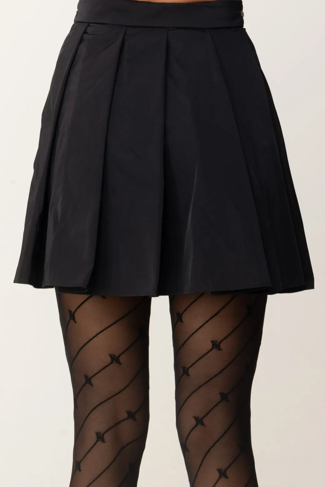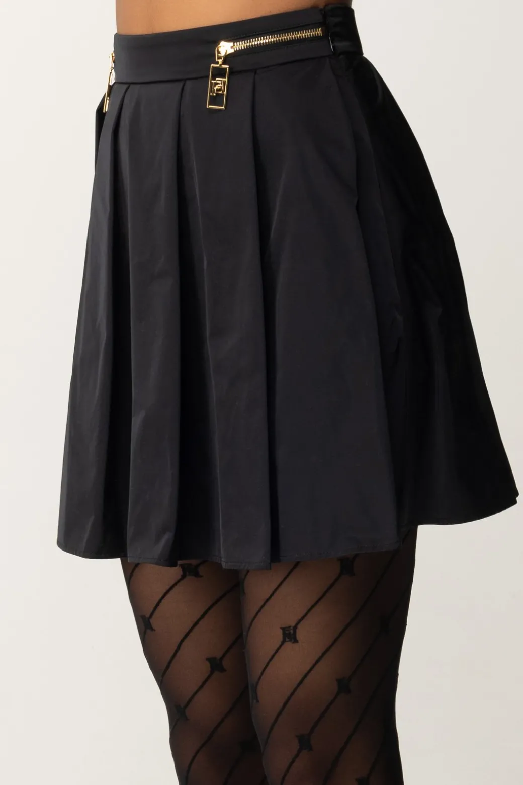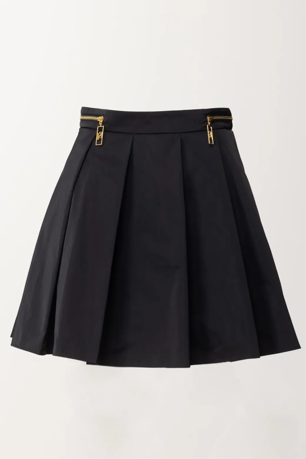 Un po’ vintage, un po’ preppy: questa minigonna Elisabetta Franchi, a pieghe riprende quel capo che non se ne va mai del tutto dal guardaroba, e lo rende attuale con un tocco ispirato ai leit motiv della collezione, ovvero la zip dorata ai fianchi con maxi tiretto. Un capo versatile e femminile, teen nell’anima ma da declinare in tantissimi modi, inclusi i più eleganti.