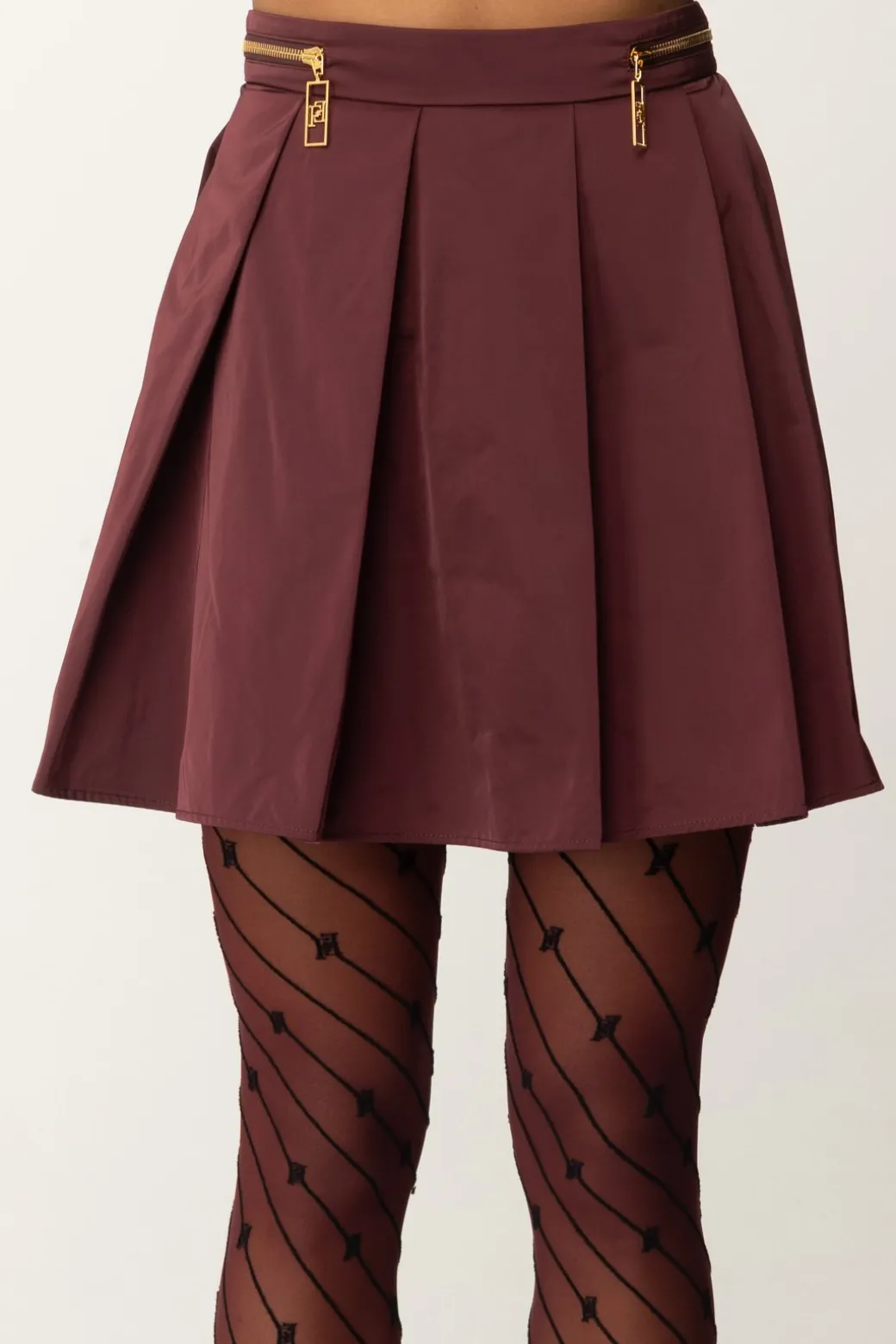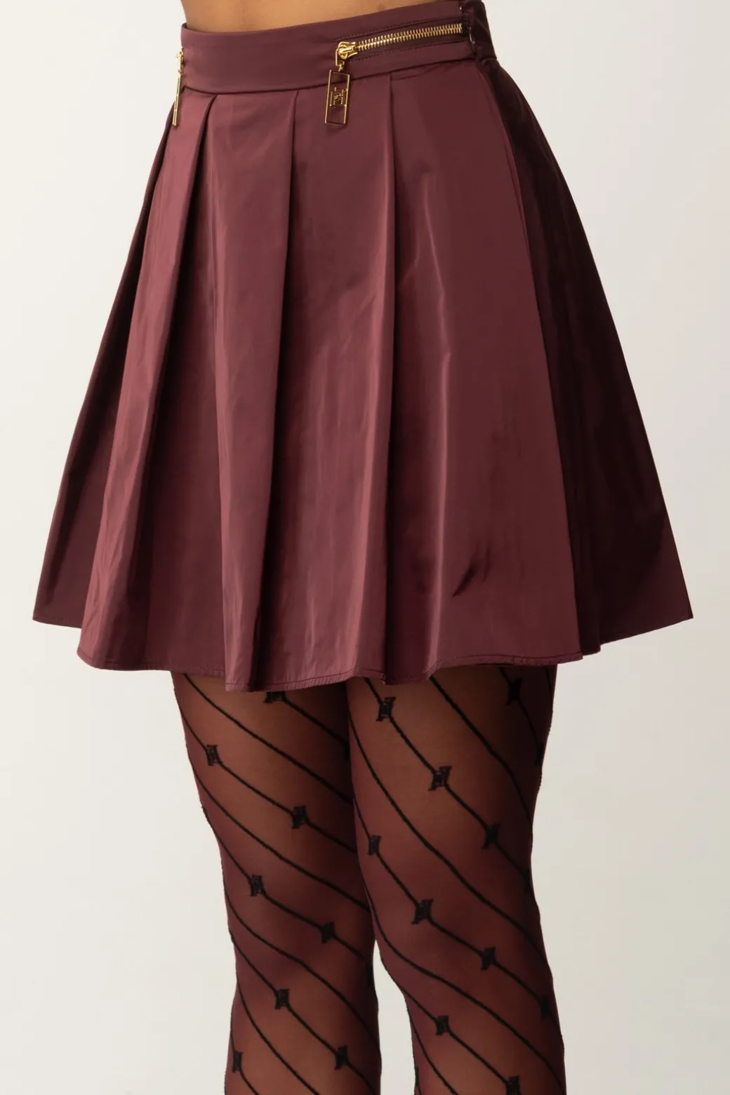 Un po’ vintage, un po’ preppy: questa minigonna Elisabetta Franchi, a pieghe riprende quel capo che non se ne va mai del tutto dal guardaroba, e lo rende attuale con un tocco ispirato ai leit motiv della collezione, ovvero la zip dorata ai fianchi con maxi tiretto. Un capo versatile e femminile, teen nell’anima ma da declinare in tantissimi modi, inclusi i più eleganti.