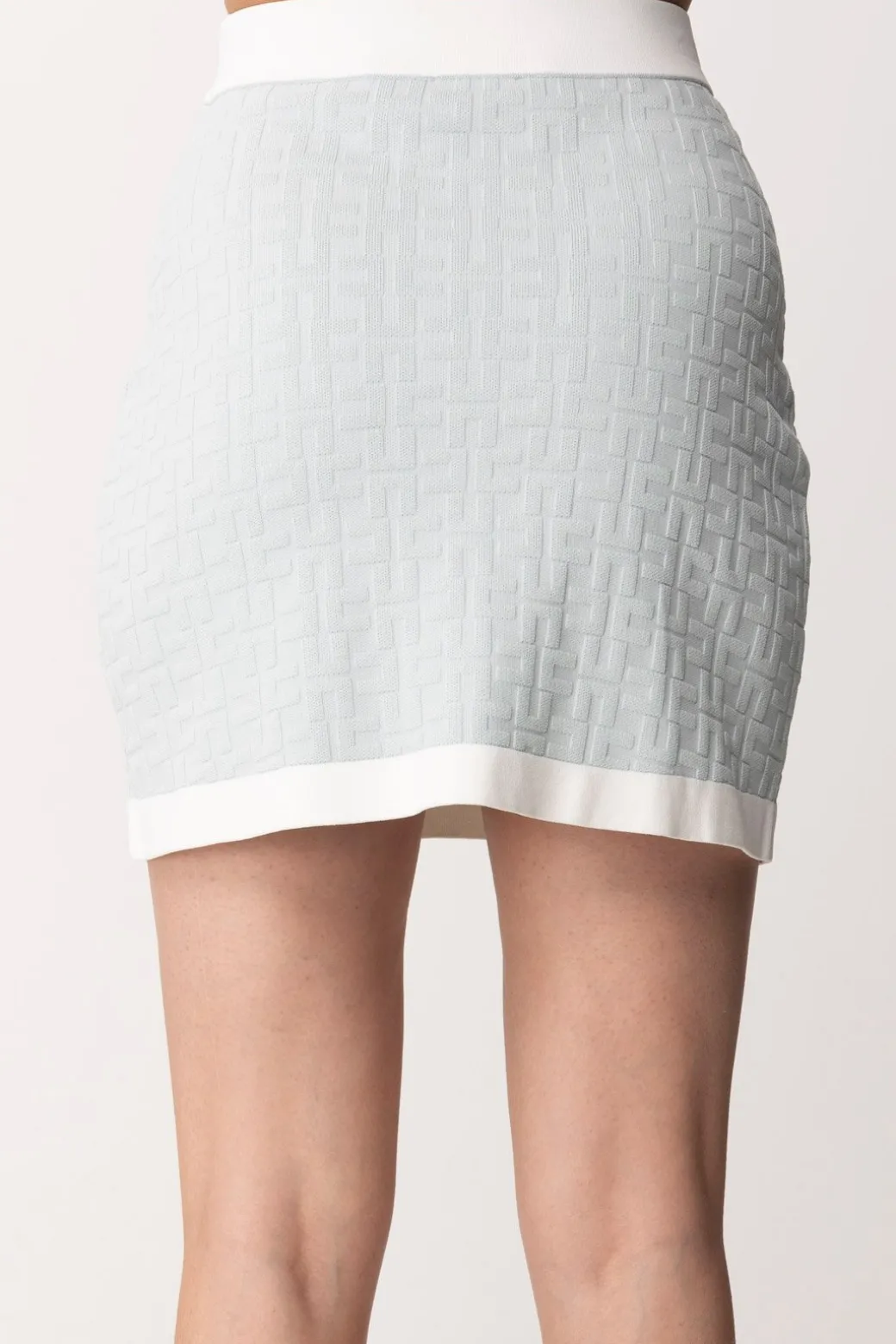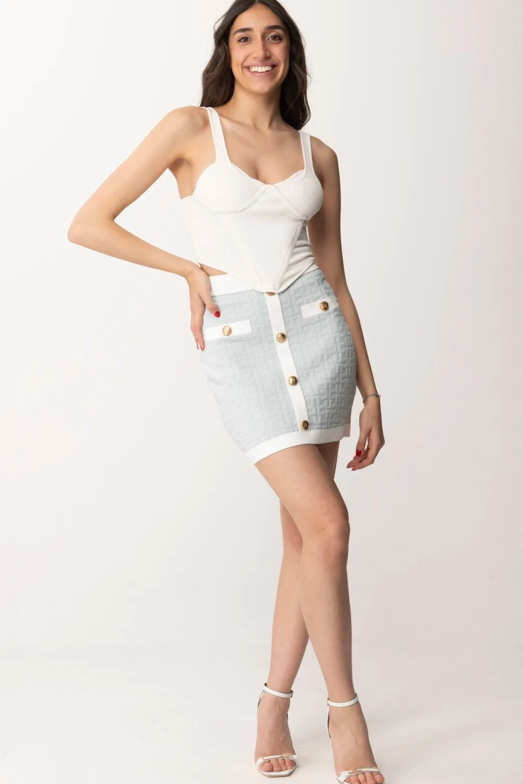 Aggiungi un tocco di lusso al tuo guardaroba con questa Minigonna Elisabetta Franchi in viscosa embossed con logo doppia C all-over, colori a contrasto e la finta abbottonatura sul davanti con bottoni in metallo dorato che completa il look con eleganza.