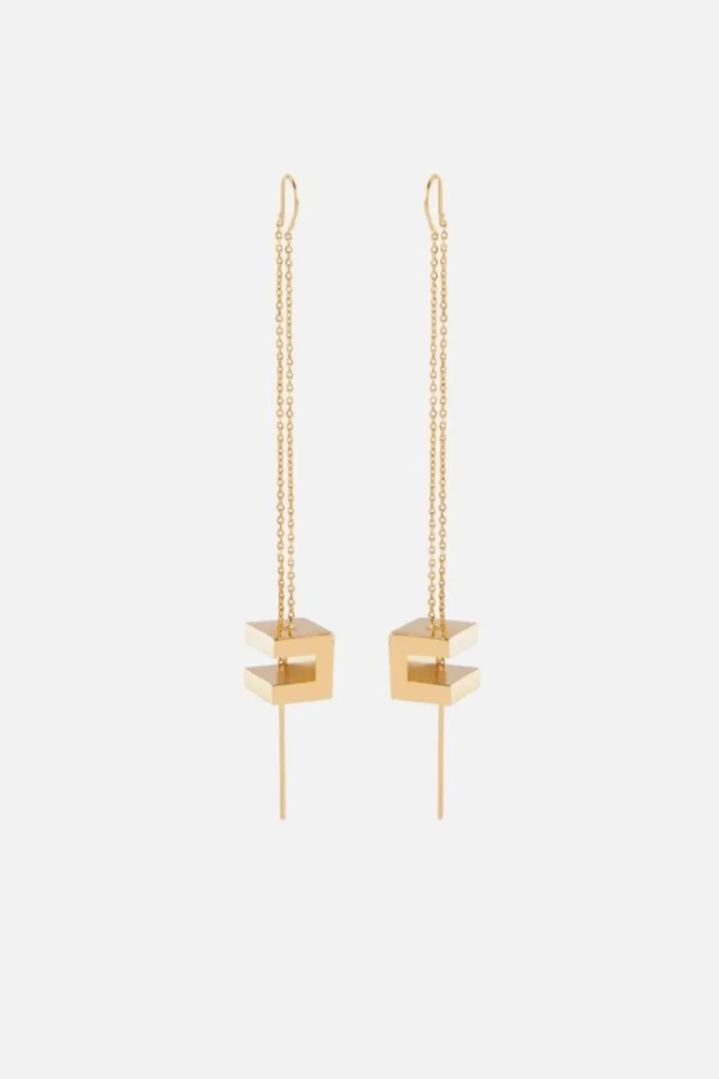Orecchini Elisabetta Franchi minimalisti ma d’impatto, giocano con la geometria moderna grazie alla sottile catena dorata e al logo doppia C trasformato in un elegante cubo. Perfetti per aggiungere un tocco di raffinatezza a qualsiasi look.