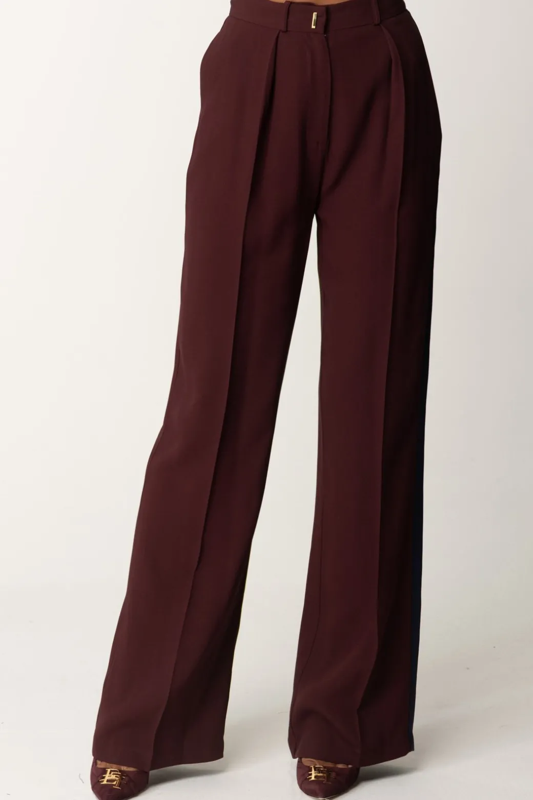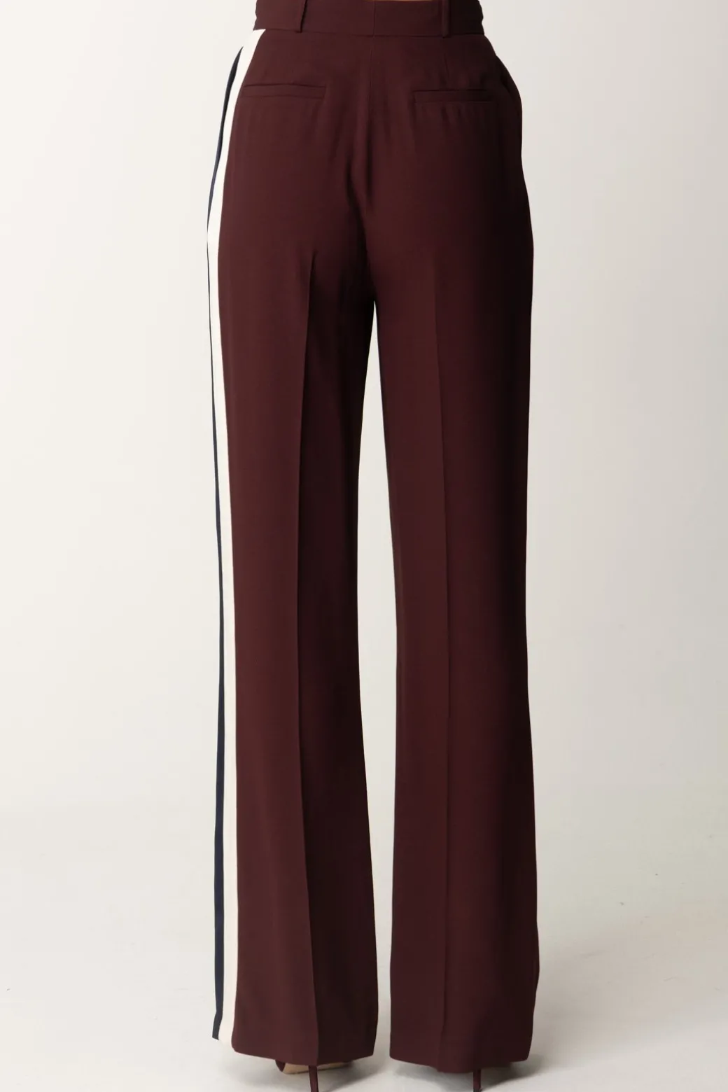 Eleganza moderna è ciò che emanano questi pantaloni Elisabetta Franchi , hanno un taglio dritto, sono realizati in crêpe enver satin e caratterizzati con pinces e bande laterali a contrasto di colore. Ideale per un look raffinato e contemporaneo.