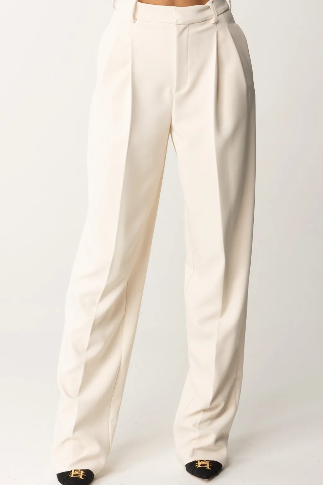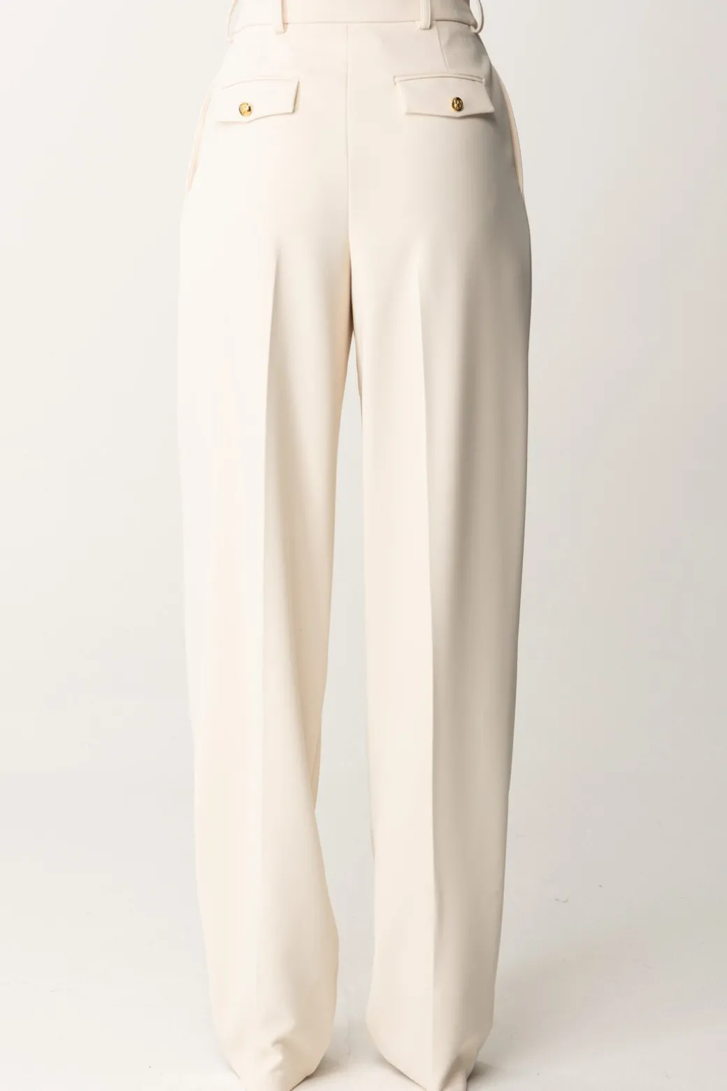 Eleganza classica per questi pantaloni Elisabetta Franchi caratterizzati da doppia pinces e gamba dritta a cui dare slancio con il giusto paio di tacchi. La vita alta con passanti per cintura ti suggeriscono di completare il tuo look con il tuo tocco personale: un accessorio in vita, anche gioiello, e una top che dia altettanta enfasi alla waistline!