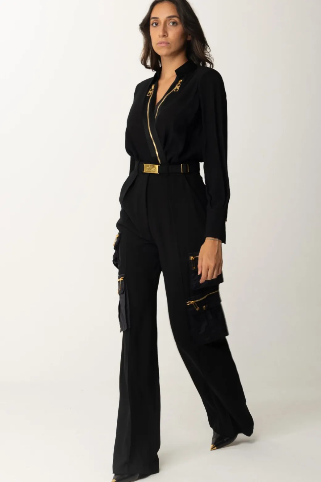 Pantaloni Elisabetta Franchi che creano la perfetta combo urban chic! Hanno un taglio dritto e sono realizzati in crêpe fermo con pinces, le tasche a soffietto in nylon tecnico aggiungono un tocco giocoso e casual, illuminate da zip in oro che richiamano la cintura che evidenzia il punto vita con la placca logata. Top, t-shirt o bluse, saranno perfetti per un look dal mattino alla sera!