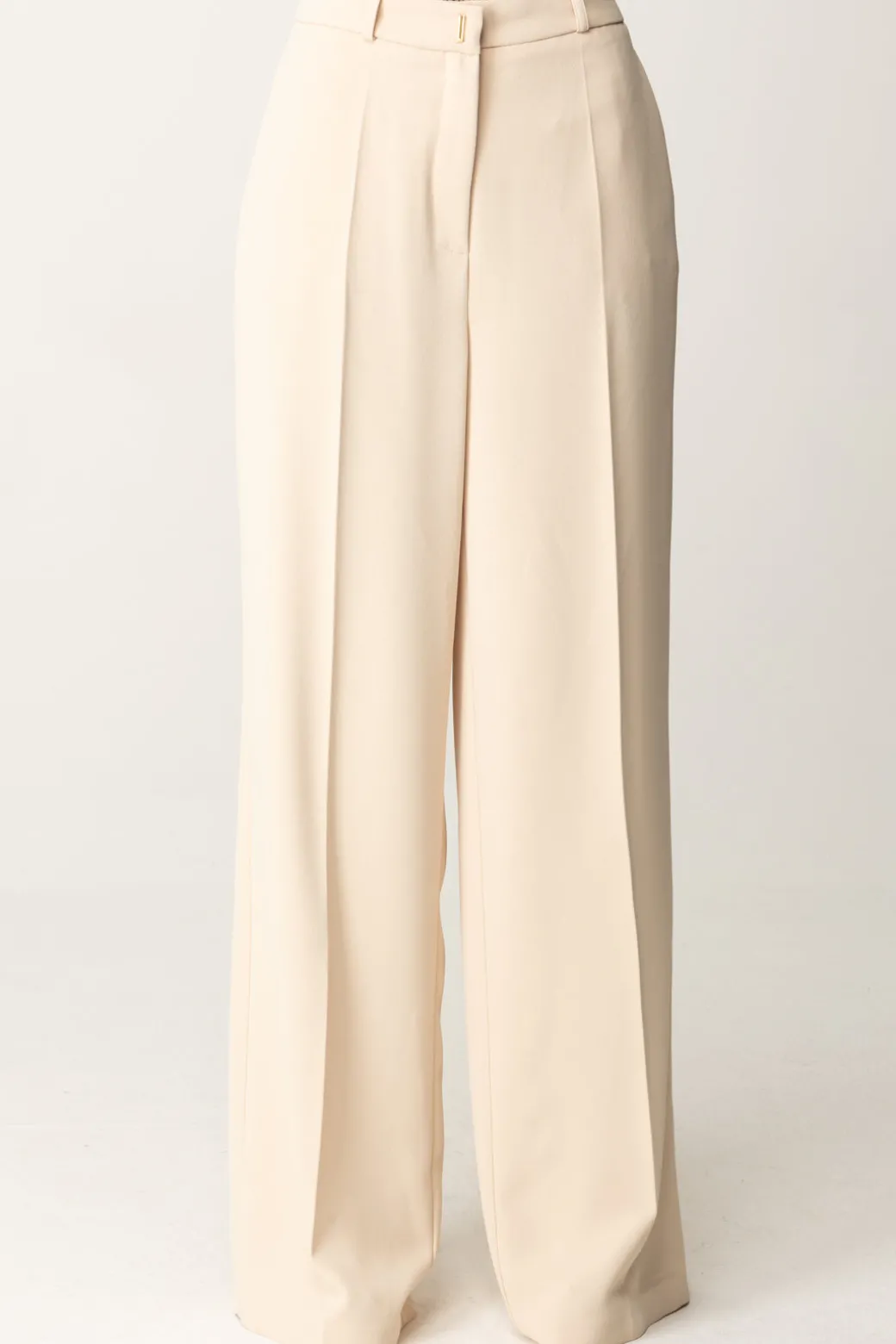 Eleganza pret-a-porter con questi pantaloni Elisabetta Franchi taglio dritto, in crepe fermo leggero e dal design basico e versatile a gamba larga. Riconoscibili nello stile, ma non solo: la placca oro applicata al punto vita riproduce il logo della maison, un piccolo vezzo di stile per i tuoi look.
