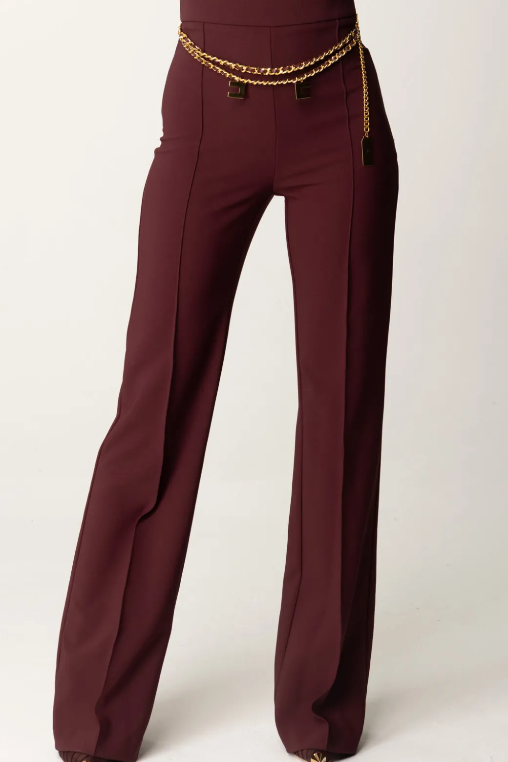 Intramontabile modello a palazzo per intramontabili pantaloni Elisabetta Franchi, eleganti e chic per i tuoi outfit di stagione. Li arricchisce l’applicazione di una catena con infilature e charms logati, che puoi rimuovere all’occorrenza, che da enfasi alla vita alta, rendendoli perfetti per abbinamenti con body e top crop che lascino ben a vista questo particolare.