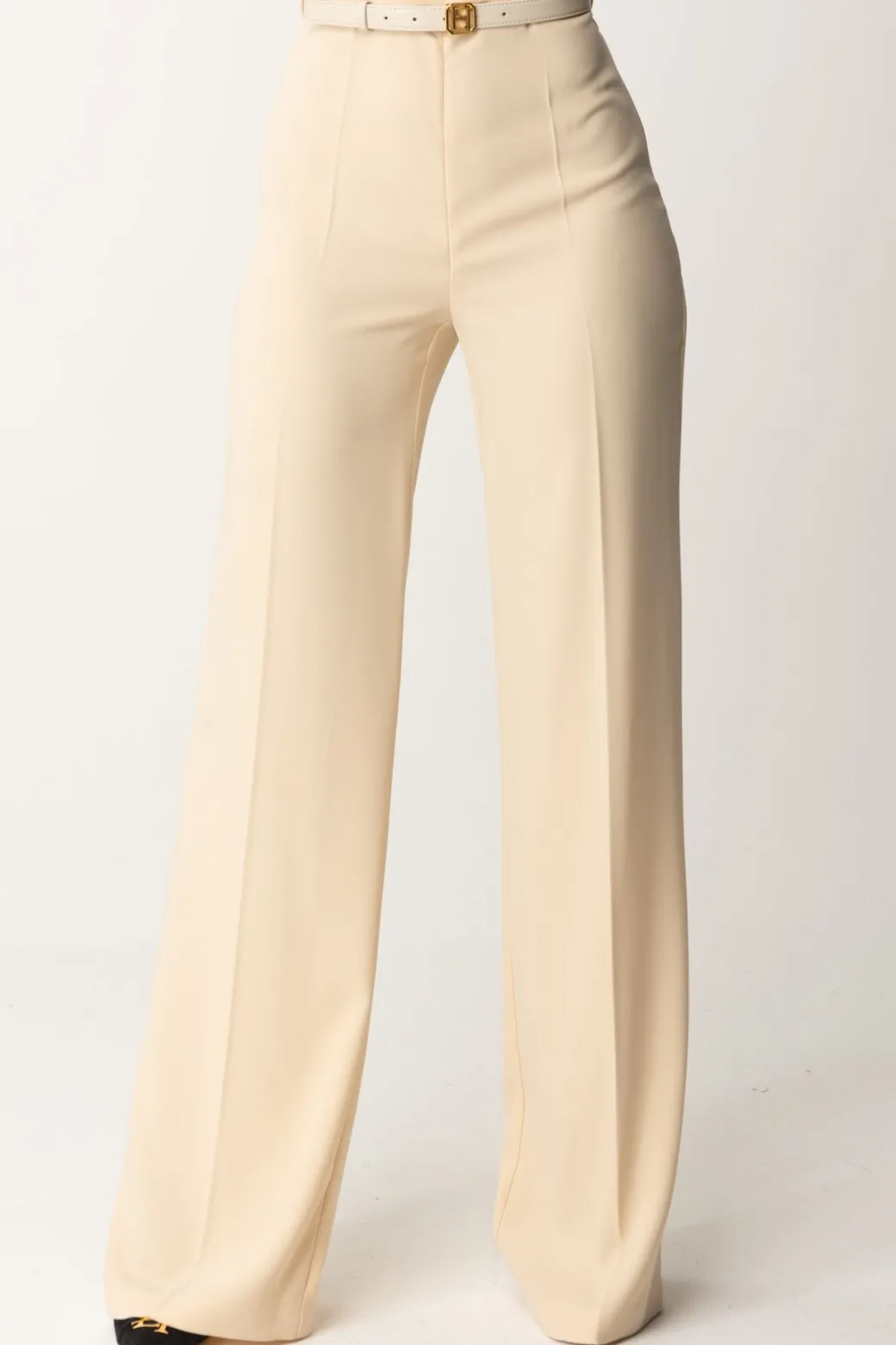 Eleganza e comfort si incontrano in questi Pantaloni palazzo Elisabetta Franchi, realizzati in raso con stiro piega, presentano un dettaglio luminoso sul punto vita che viene esaltato da una cintura con fibbia dorata, perfetta per un look sofisticato e curato nei dettagli.