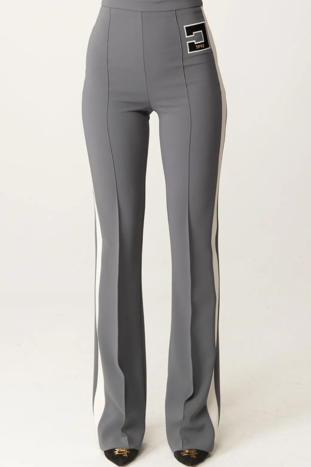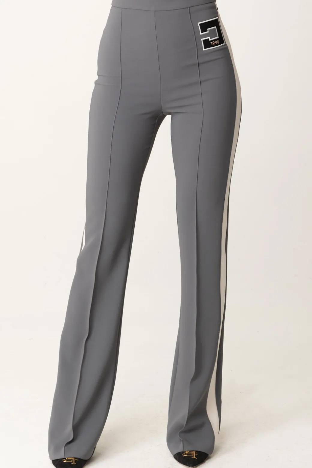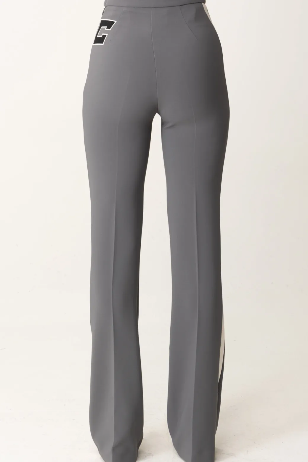 Pantaloni Elisabetta Franchi dal taglio dritto e leggermente svasato al fondo. Abbraccia un mood femminile che si caratterizza da bande e ricamo logo a contrasto sul fianco per un’aggiunta un po’ più sportiva al look finale. Perfetto per un outfit abbinato a una camicia e mocassini, ma anche t-shirt o maglie chic.