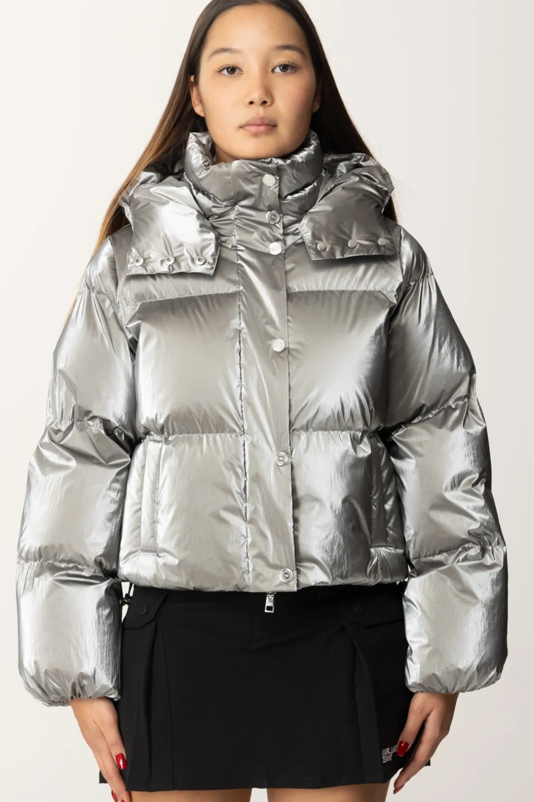 Un po’ spirtivo, un po’ urban, molto utile per le tue giornate invernali: piumino Elisabetta Franchi dal taglio crop, caratterizzato da rivestimento in nylon effetto metallizzato chevron e tasche ai fianchi, oltre che un bel collo alto per sentirti ben protetta dal freddo. Il cappuccio che lo completa è staccabile: personalizza il tuo capo in base alle esigenze del tuo outfit e della tua giornata.