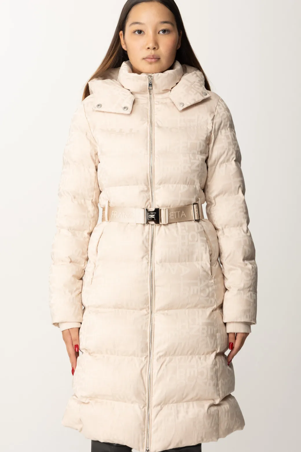 Un piumini Elisabetta Franchi dall’animo cozy-chic impreziosito da lettering con impunture, una cintura in vita per definire la figura e polsini in tessuto. Il taglio lungo lo rende perfetto per le giornate più fredde. Ideale per le uscite invernali casual, abbinalo a stivaletti e jeans skinny per un look comodo ma elegante.