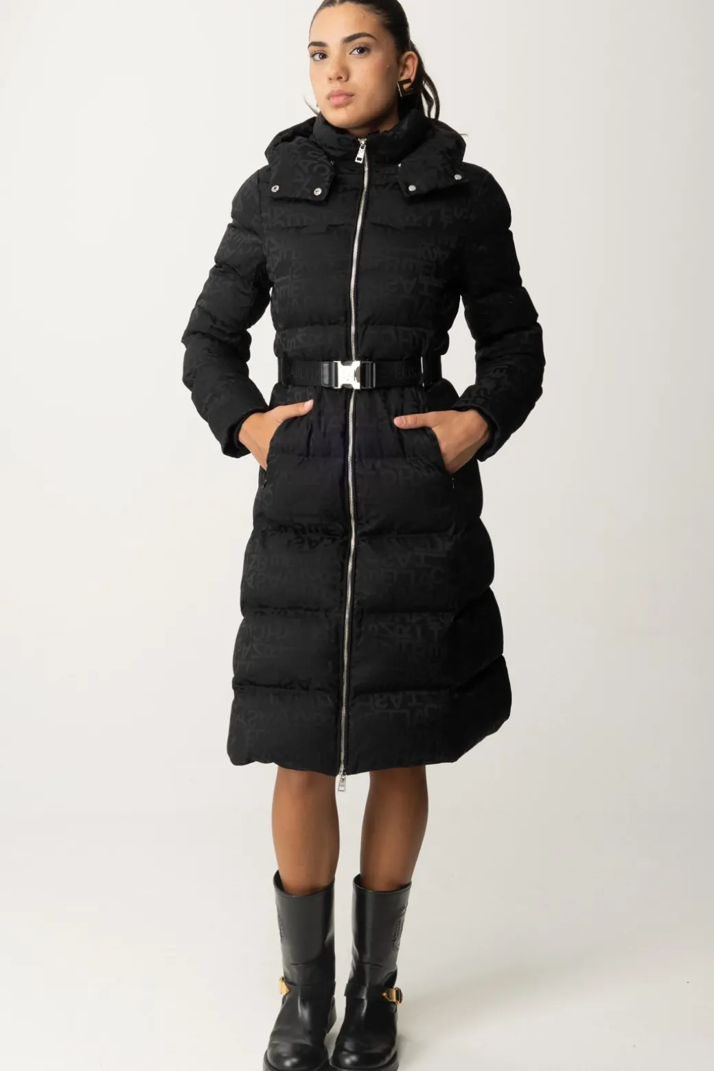 Un piumini Elisabetta Franchi dall’animo cozy-chic impreziosito da lettering con impunture, una cintura in vita per definire la figura e polsini in tessuto. Il taglio lungo lo rende perfetto per le giornate più fredde. Ideale per le uscite invernali casual, abbinalo a stivaletti e jeans skinny per un look comodo ma elegante.