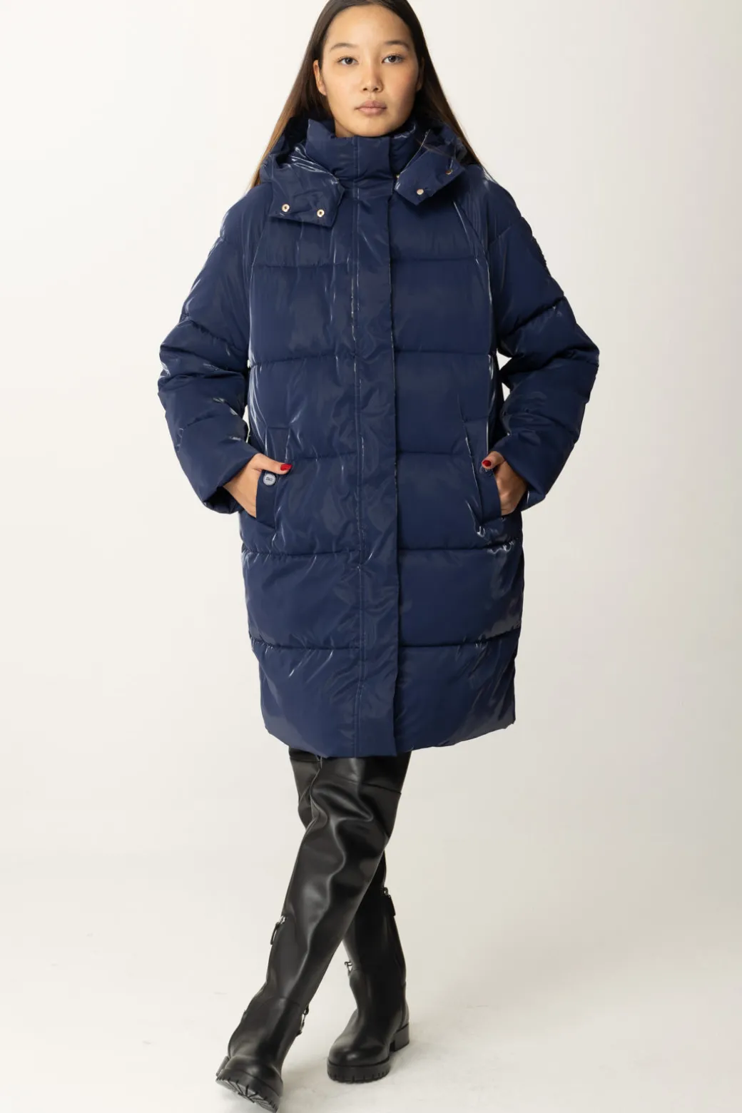 Con un piumino Elisabetta Franchi come questo, affronti meglio qualsiasi giornata di freddo! Lungo e imbottito, un avvolgente abbraccio rivestito in nylon satin, con maxi colletto e cappuccio per tenerti riparata in ogni punto. Vestibilità over per accogliere al suo interno tutti i tuoi strati e darti il massimo del comfort – e dello stile!