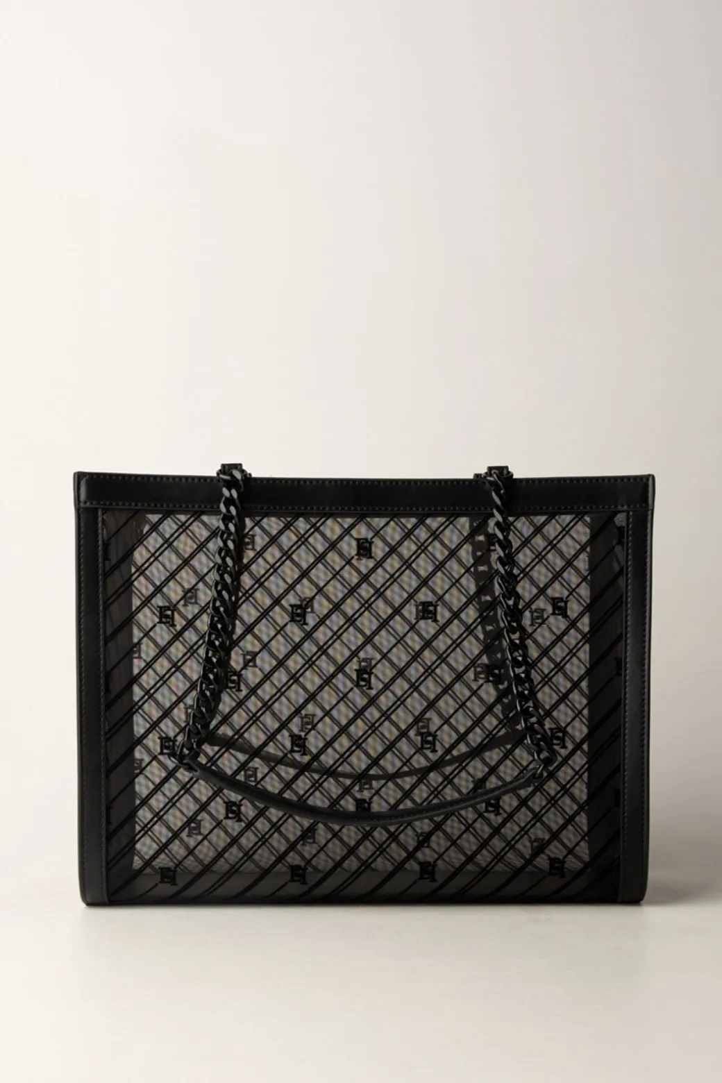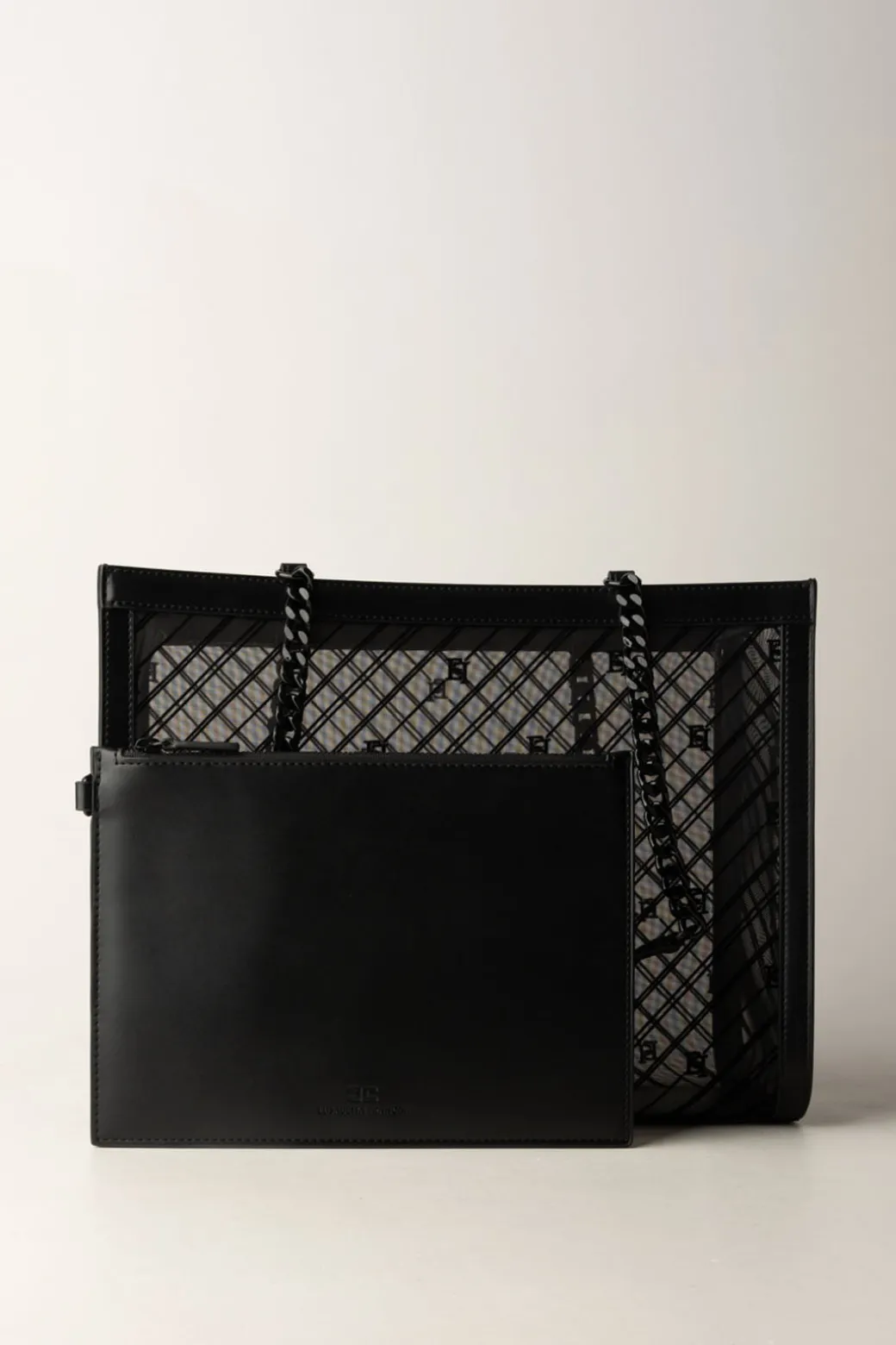 Innovativa e moderna, questa Shopper Elisabetta Franchi realizzata in tessuto rete e impreziosita da una lavorazione flock logata, è un must-have per chi ama mescolare praticità e stile cutting-edge, in più, sa come rendersi versatile grazie alla comoda clutch in tessuto effetto pelle.