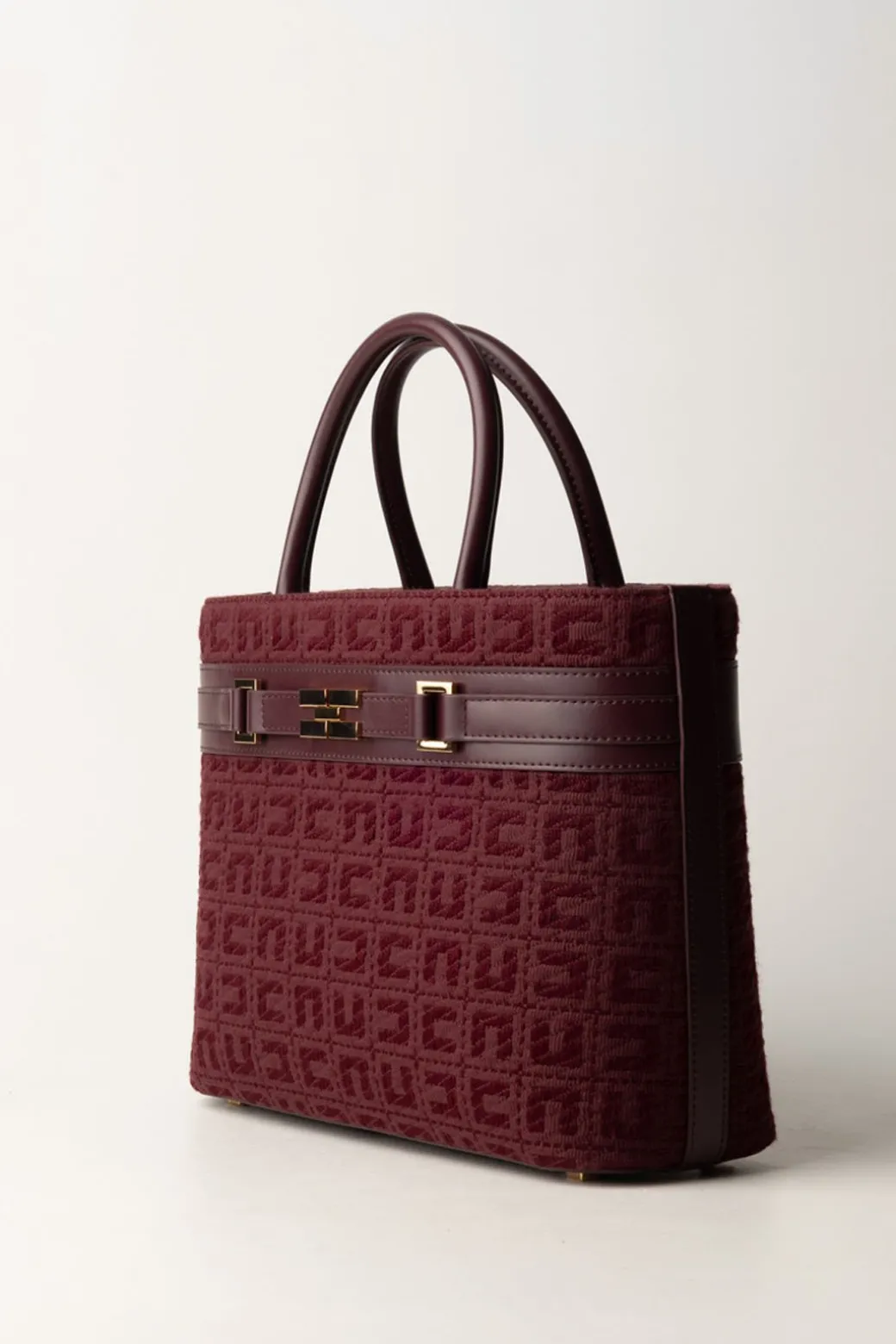 Una borsa shopper Elisabetta Franchi pronta a conquistarti! Viene realizzata in tessuto jacquard, arricchita da dettagli in pelle e morsetto logato gold, è l’accessorio perfetto per una donna sofisticata e sempre in movimento, da abbinare a un paio di décolleté nere per un look senza tempo.