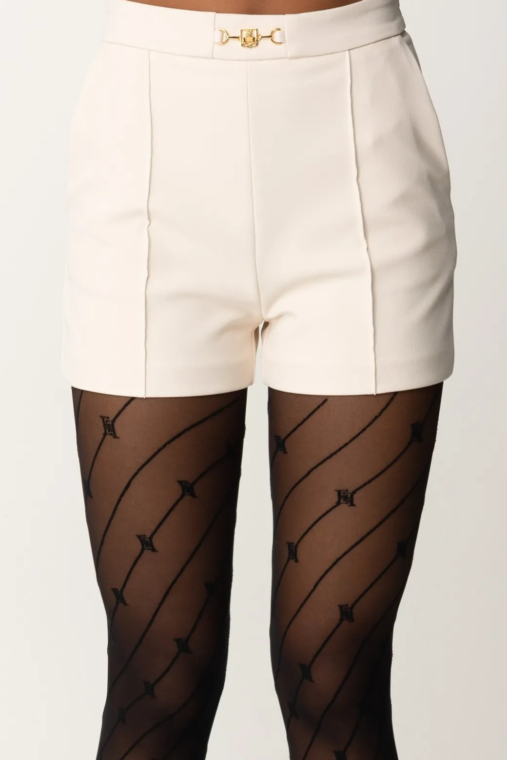 Short Elisabetta Franchi a vita alta, realizzati in doppio crêpe stretch e illuminati in vita sulla fascia dal tipico morsetto logo in metallo gold. Semplici ma sempre al massimo dell’eleganza: abbinali a un top crop e sandali per un look femminile e glamour.