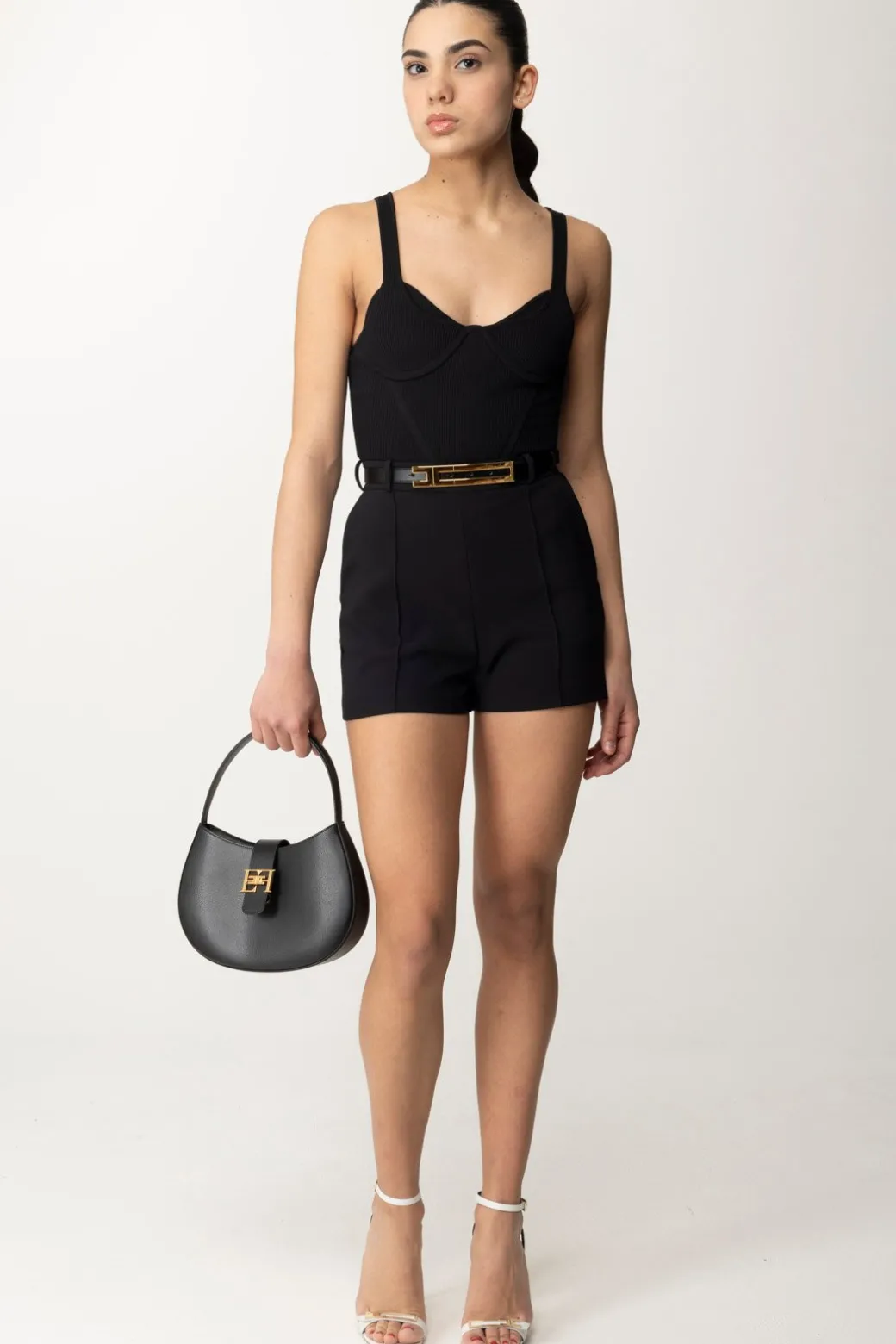 Shorts Elisabetta Franchi in crepe leggero stretch che non potrai fare a meno di classificare come “eleganti”: linee pulite e piping frontali, la cintura in pelle sintetica al punto vita è il suo perfetto completamento, sobrio quanto chic. Ma sai come cambiano subito mood appena abbini un top diverso? Sexy con un bustino, casual chic con una t-shirt e chissà quante altre magie di stile potrai fare!