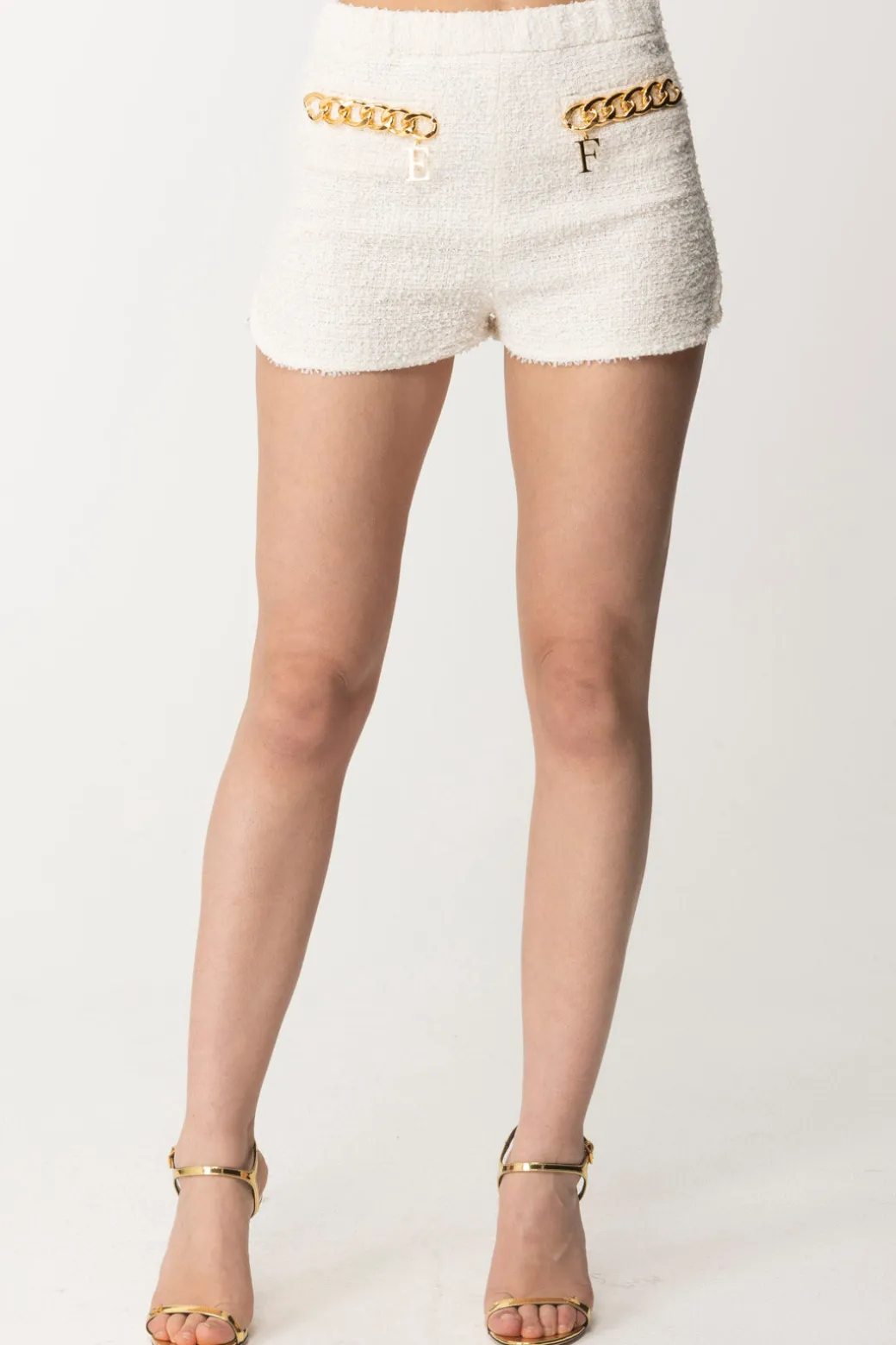 Gli Shorts Elisabetta Franchi in tweed sono perfetti per uno stile casual e chic. Il modello presenta un fascione elastico e le tasche impreziosite da catena groumette con charms logo. Ideali da abbinare a una camicia o un top per un look fresco e alla moda.