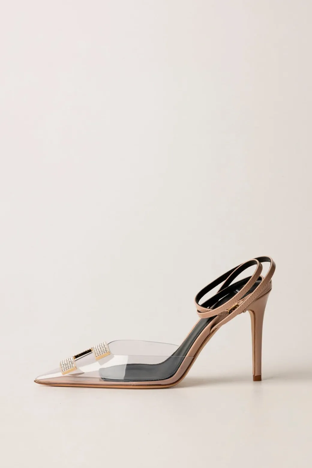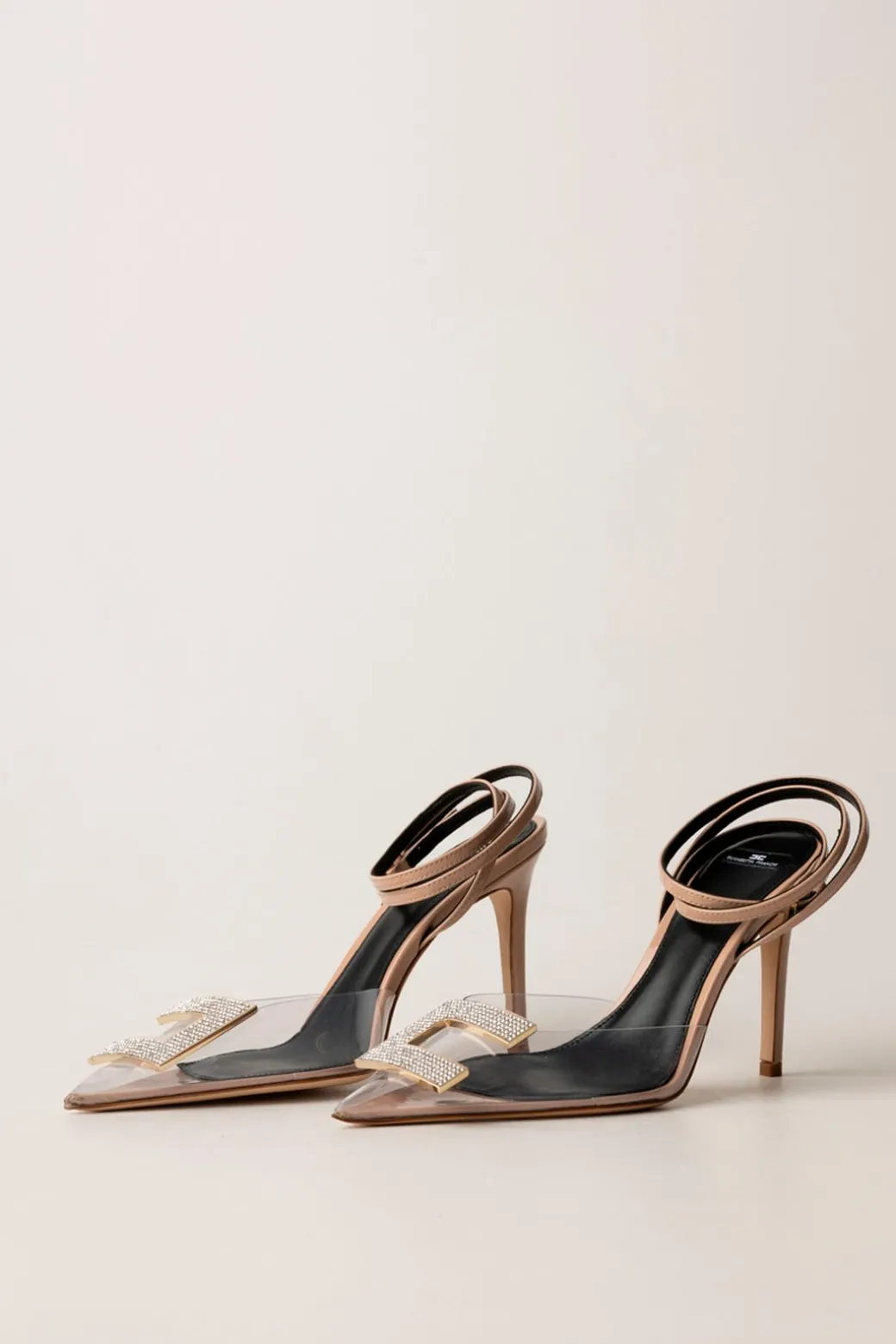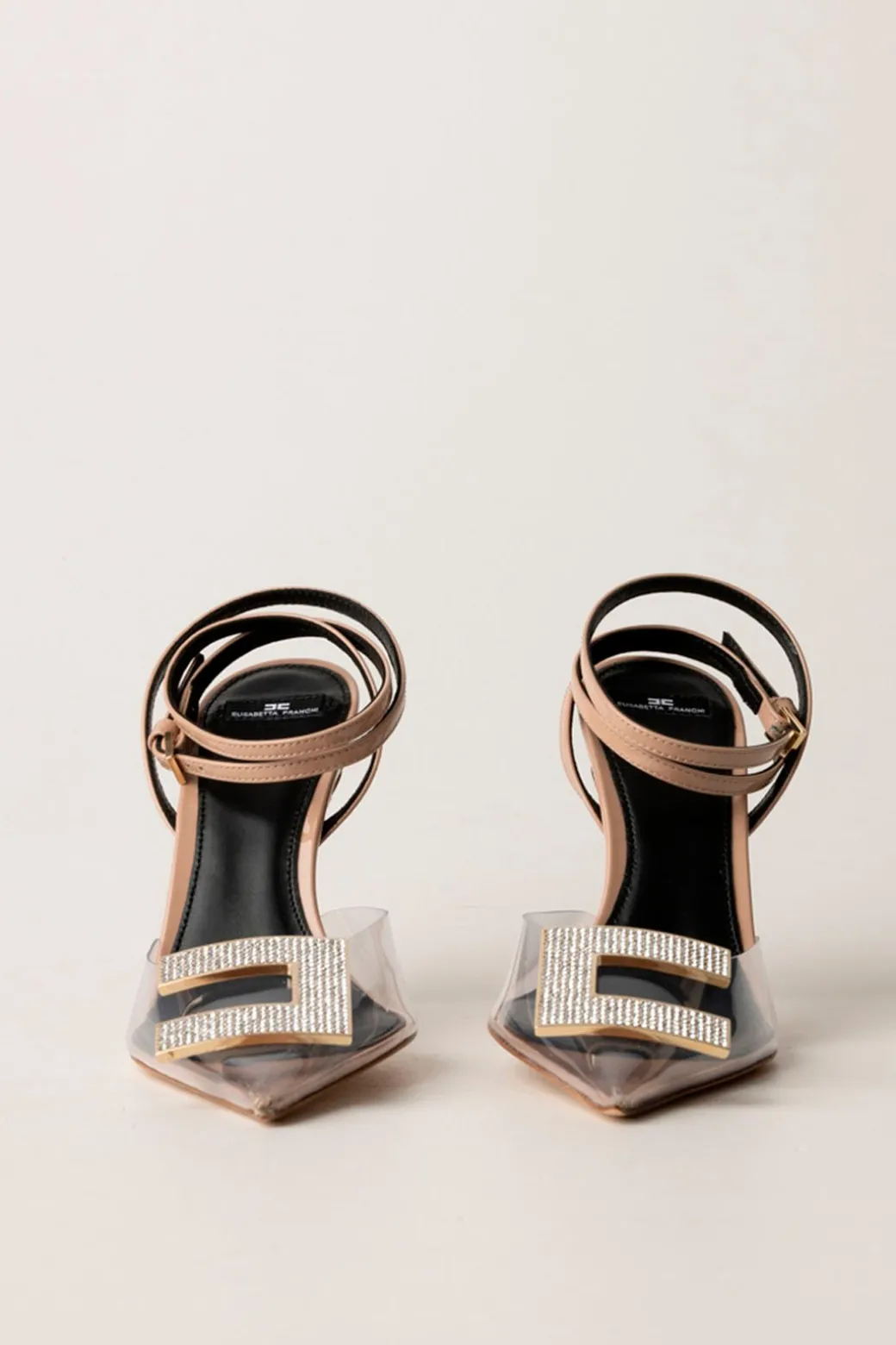Per outfit da Red Carpet ci vogliono scarpe da red carpet: così queste elegantissime slingback Elisabetta Franchi sono l’accessorio perfetto per i tuoi look più importanti, che esigono tacco alto e tocco luxury, come quello che il logo C in strass potrà garantirti. Bellissimo anche l’effetto nudo dato all’inserto in pvc: un sandalo fuori dall’ordinario, per eventi straordinari.