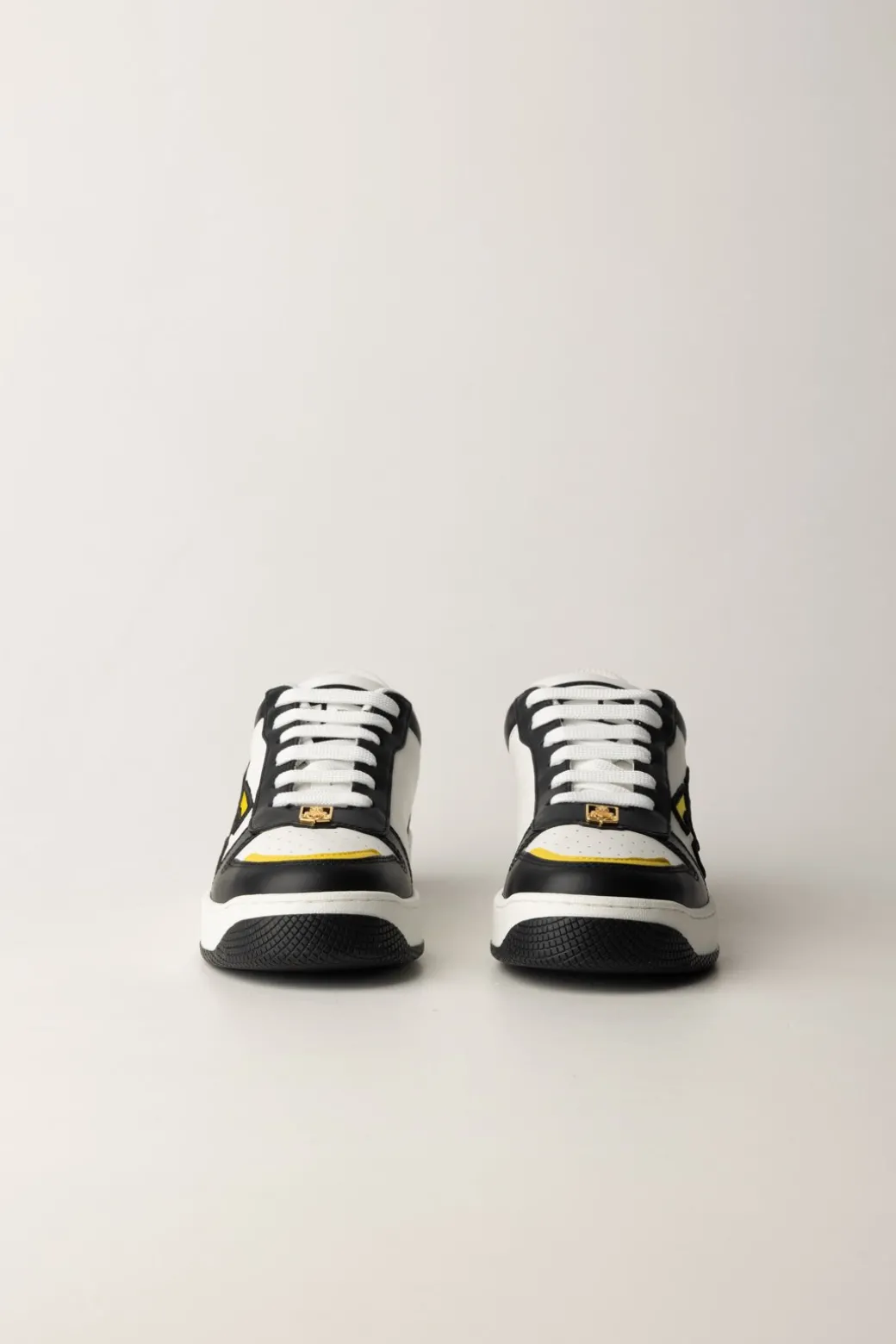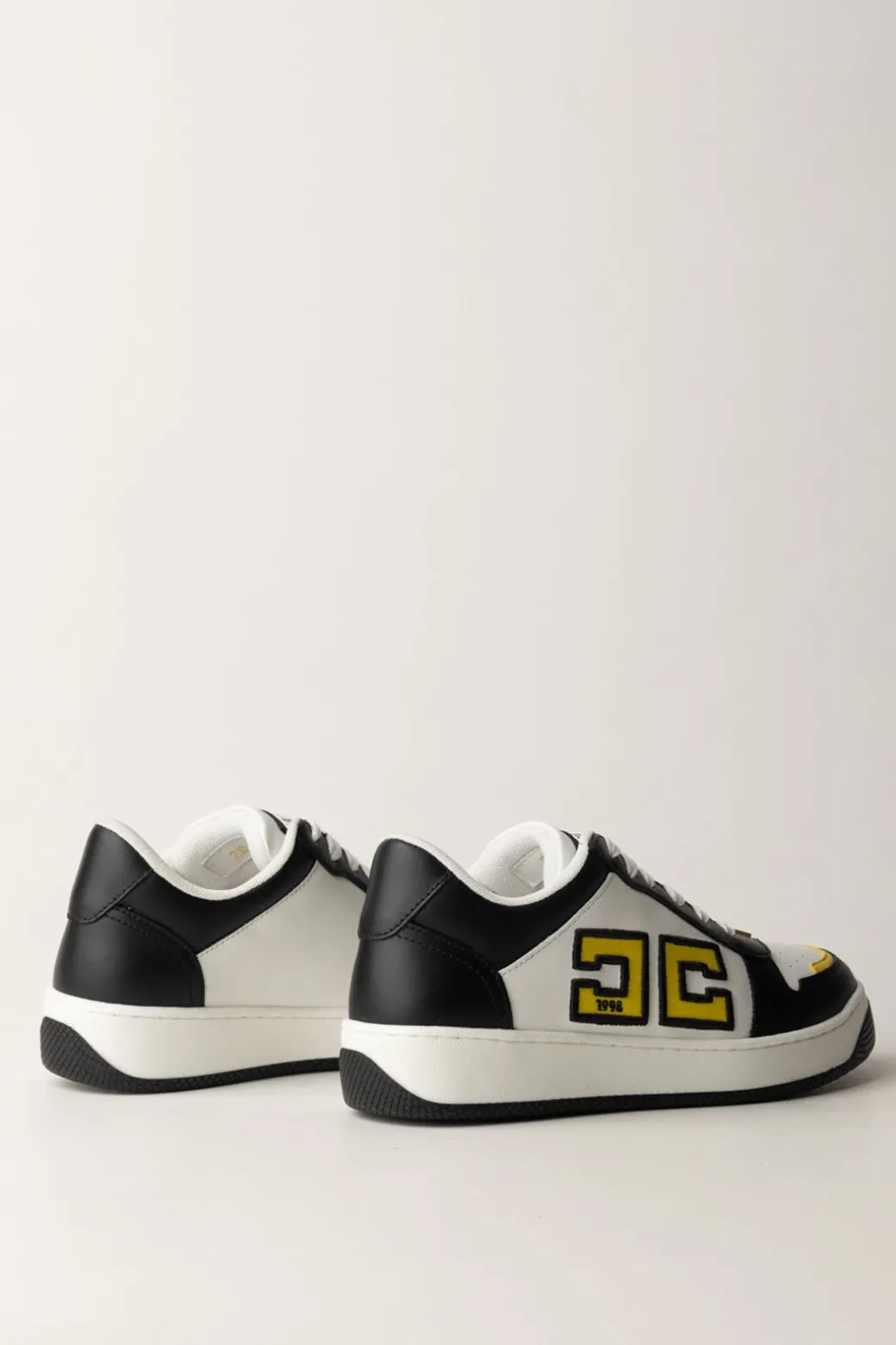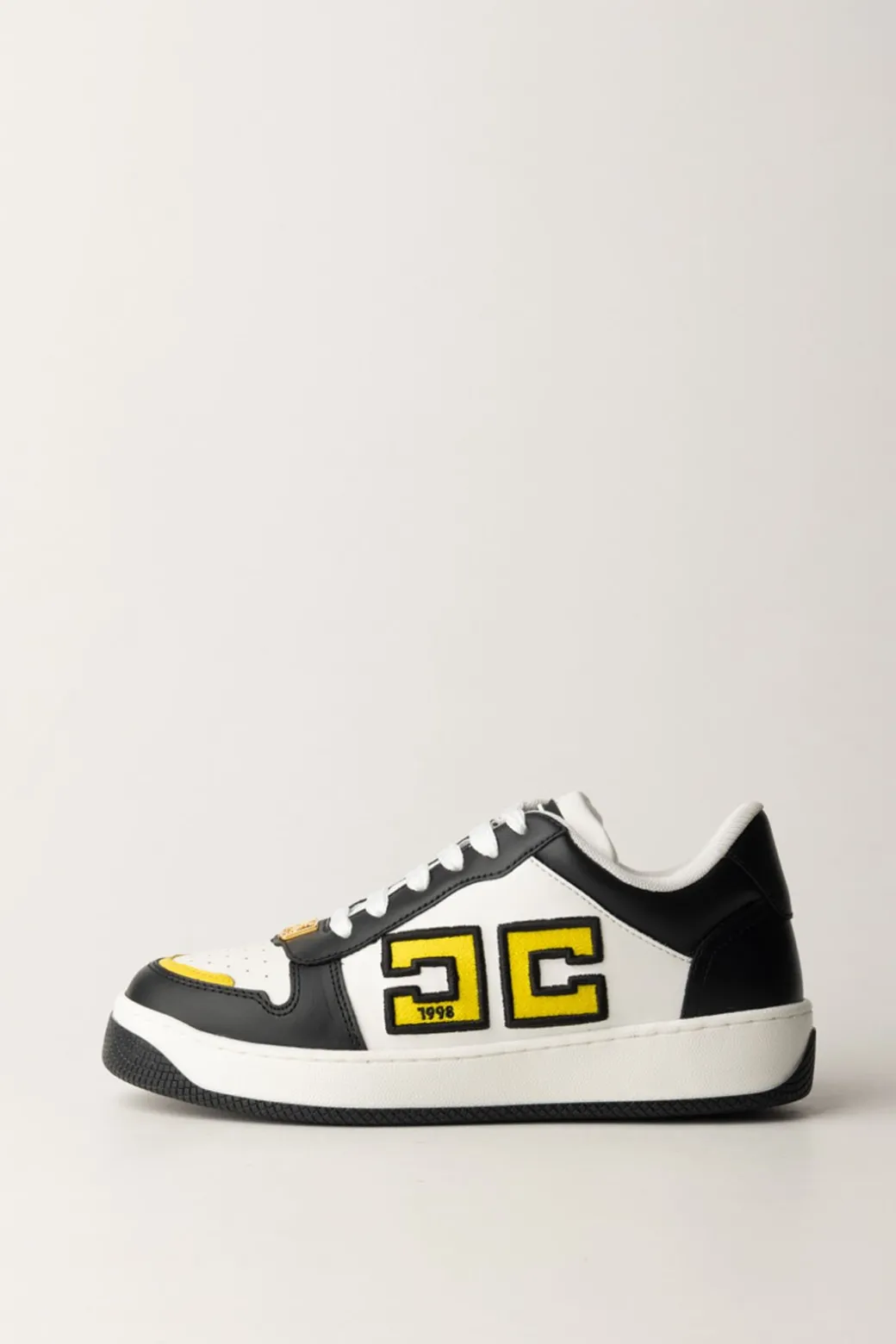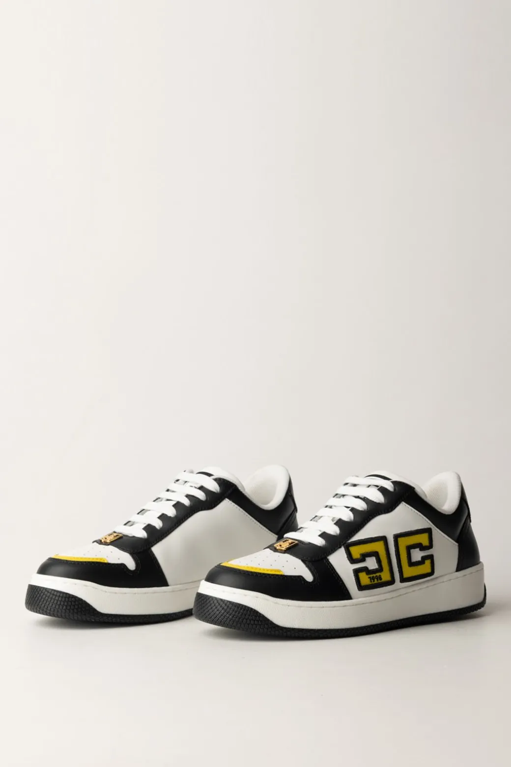 Sportive e chic: sono le sneakers Elisabetta Franchi in pelle con logo doppia C a contrasto. La suola in gomma bicolor e la placca scudetto in metallo dorato completano il design. Perfette per un look casual, indossale con jeans skinny e una giacca bomber.