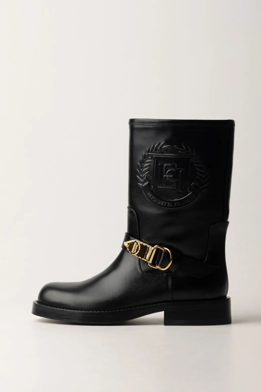 La versatilità tipica di questa calzatura con un’aggiunta di stile tipica della collezione: il logo embossed in versione stemma che caratterizza questi stivali biker Elisabetta Franchi sarà una decorazione ricorrente in capi e accessori della AI24. Provali con leggings e maxi dress, così come con abiti in maglia a cui aggiungere una nota gritty per i tuoi outfit da tutti i giorni.