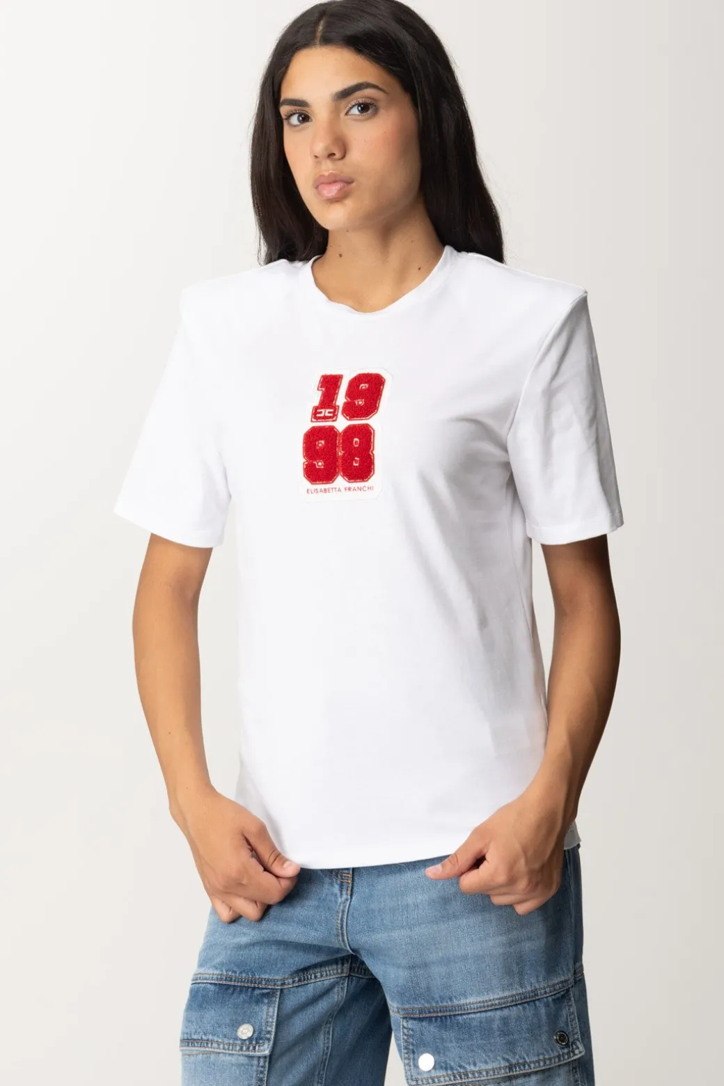 T-shirt Elisabetta Franchi con patch logo in stile college che rimanda al mood dell’intera collezione invernale. Spalline imbottite e girocollo, un capo casual che potrai abbinare a tantissimi bottom della collezione, giocando con i contrasti di stile per un risutlato fresco e ricercato.