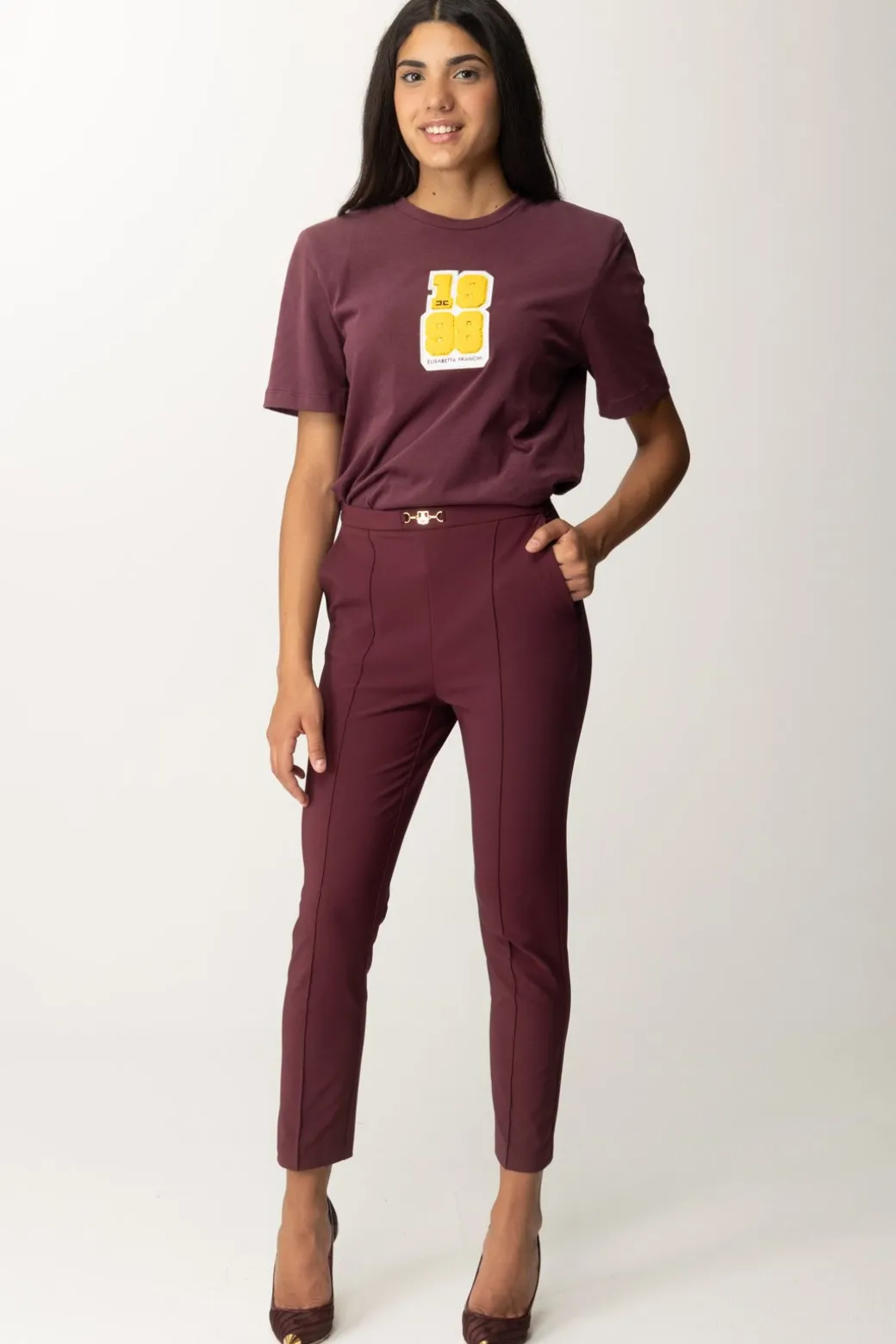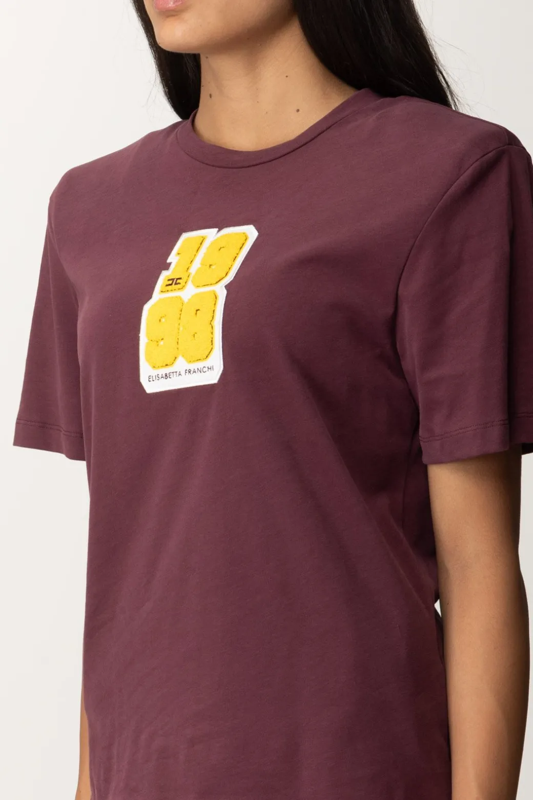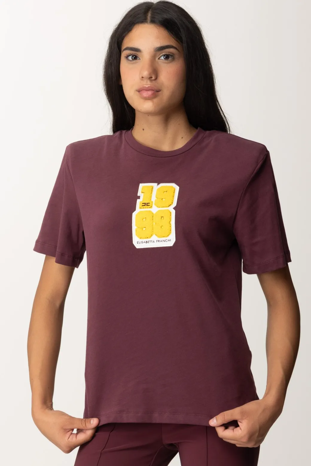 T-shirt Elisabetta Franchi con patch logo in stile college che rimanda al mood dell’intera collezione invernale. Spalline imbottite e girocollo, un capo casual che potrai abbinare a tantissimi bottom della collezione, giocando con i contrasti di stile per un risutlato fresco e ricercato.