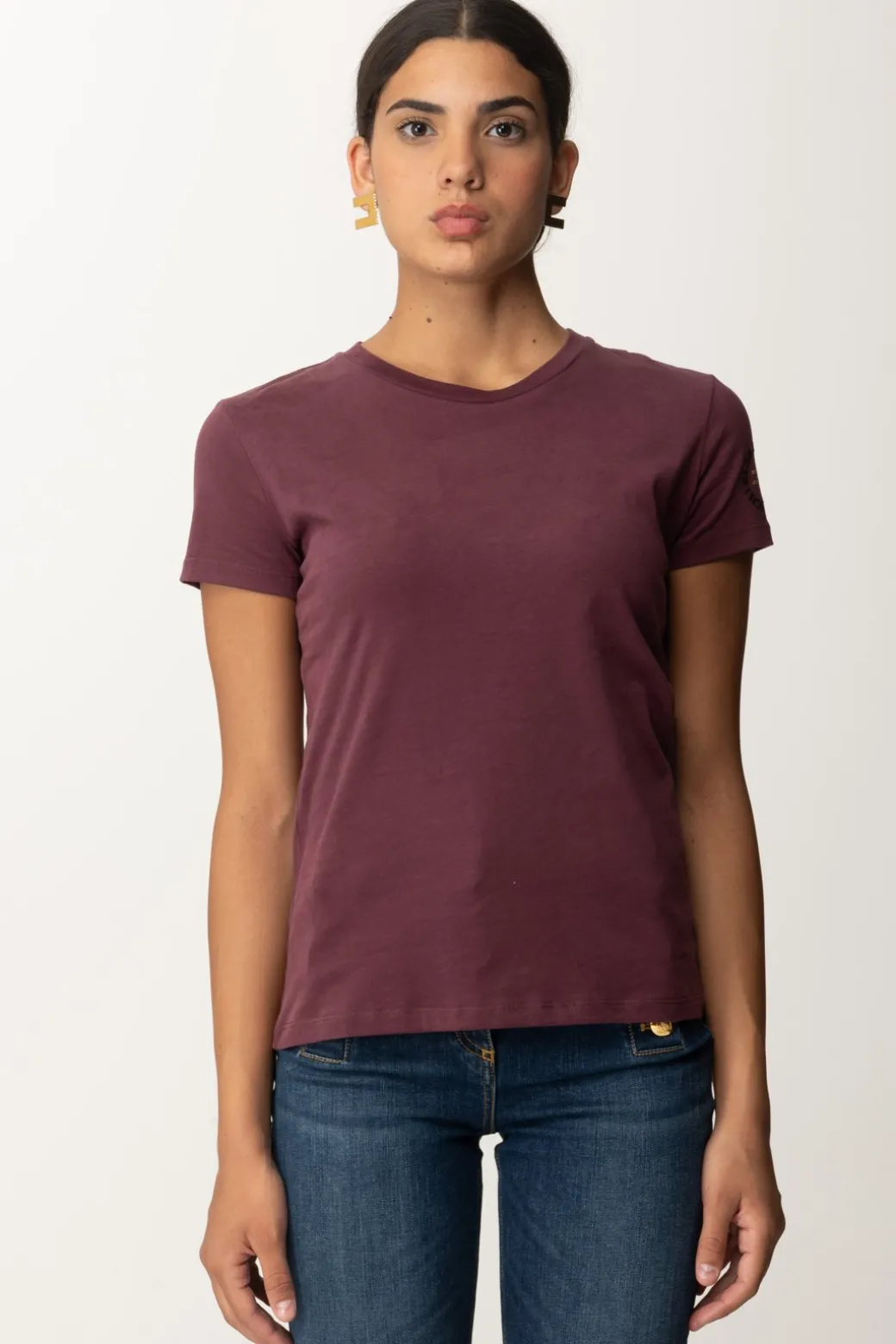 La stavi cercando? Eccola qua: la t-shirt Elisabetta Franchi di stagione, la classica con il logo ricamato sulla manica. Realizzata in jersey di cotone, versatile e comoda per ogni tua necessità quotidiana, da indossare insieme a cardigan e blazer: scegli il tuo colore e falla subito tua, vanno a ruba!