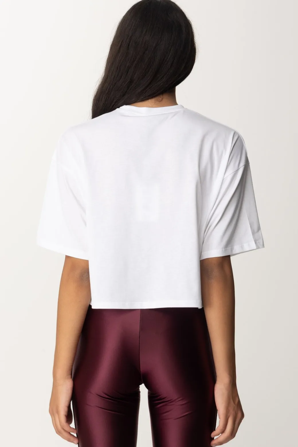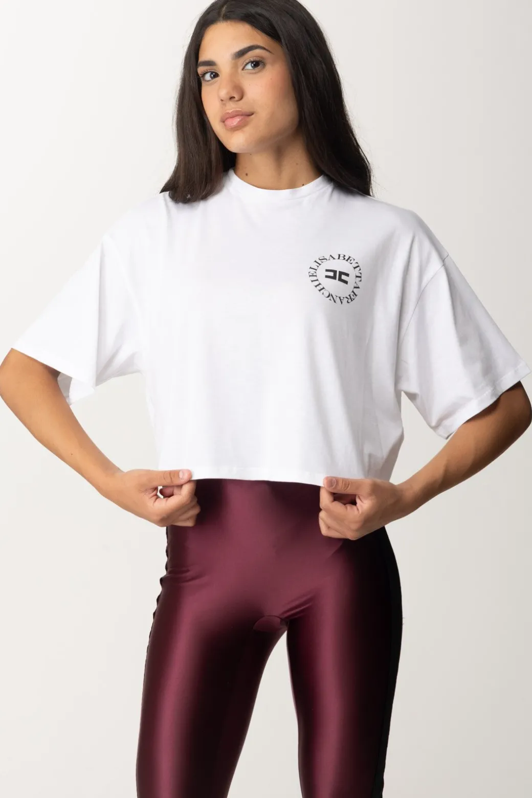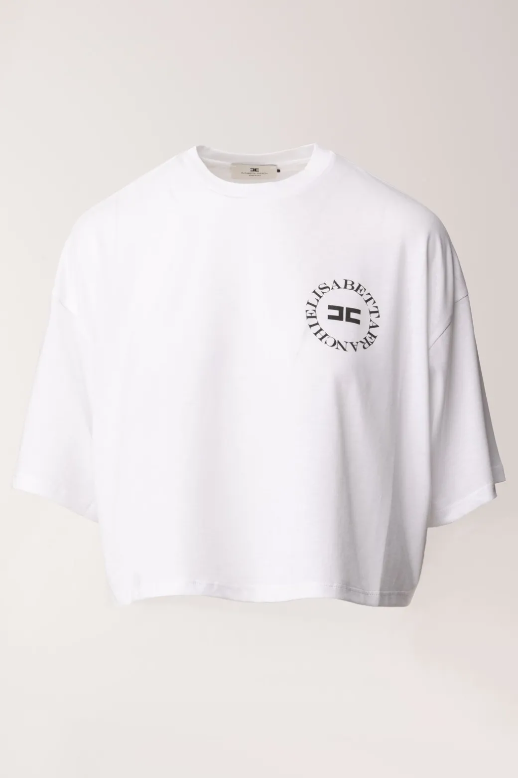Fresca e moderna, ideale da indossare tutti i giorni, la t-shirt Elisabetta Franchi dal taglio cropped in jersey di cotone leggero è caratterizzata da stampa logo ad acqua a contrasto sul petto, il che la rende ideale per un look giovane e dinamico.