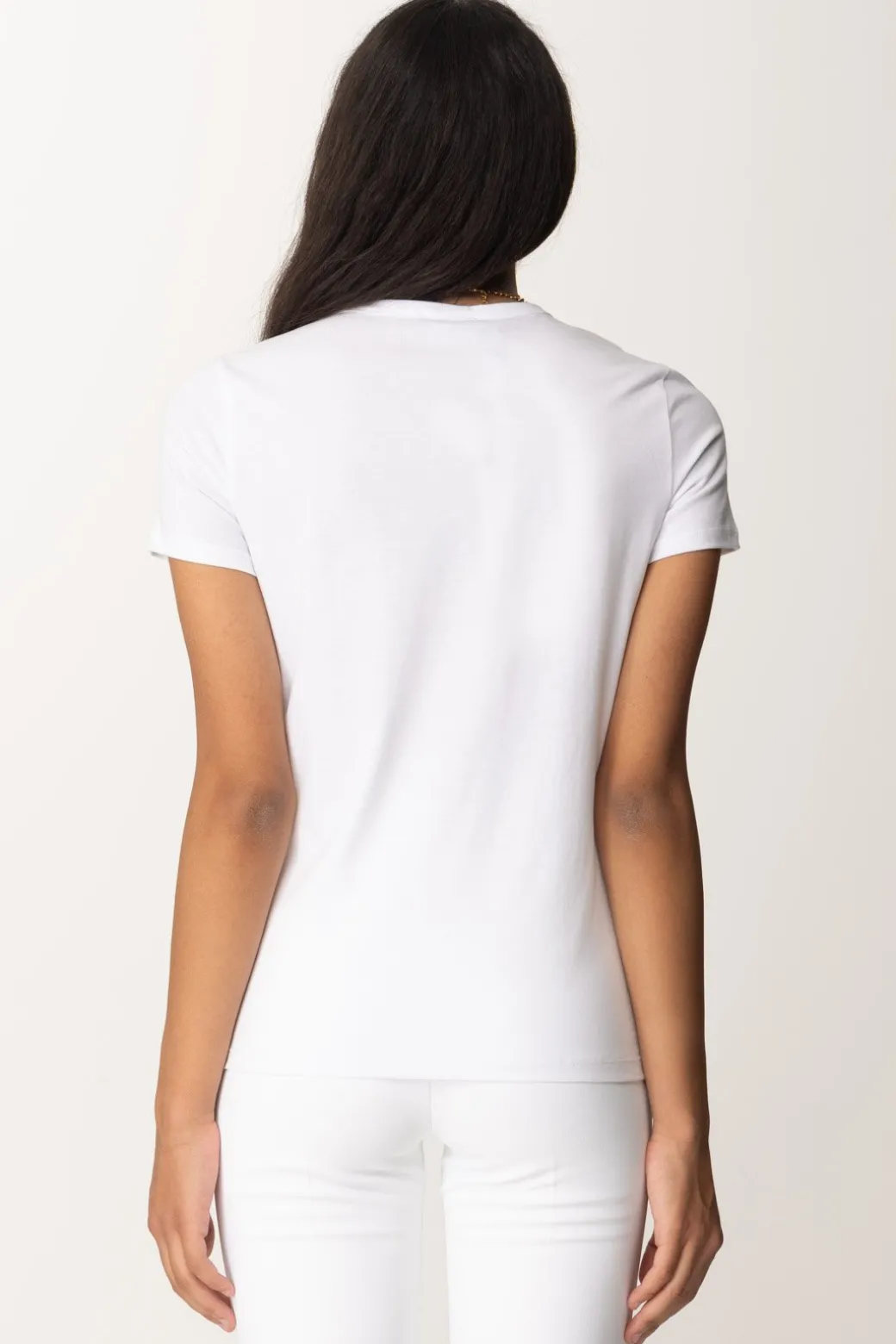 Cosa c’è di più bello di una t-shirt Elisabetta Franchi di tendenza? Una t-shirt Elisabetta Franchi completa di gioiello! In questo caso, di una bella collana con pendenti logati, che illumina i tuoi outfit e li rende subito riconoscibili. ,Realizata in morbido jersey di cotone, manica corta e girocollo, un modello pratico e versatile, chic al punto giusto.