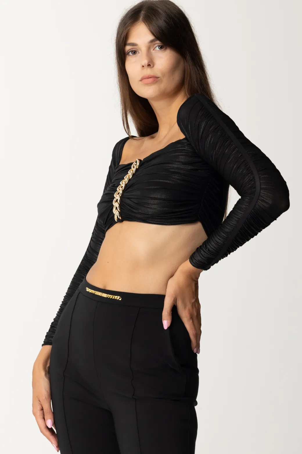 Elisabetta Franchi Top Crop In Jersey Laminato con CatenaNERO