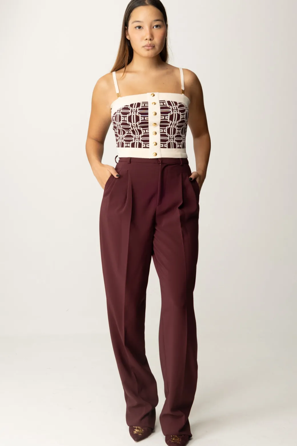 Top in viscosa Elisabetta Franchi con stampa logo jacquard e finta abbottonatura in oro che aggiunge una nota luminosa al tuo outfit. Carinissimo con outfit eleganti, ma anche per dare un tono esclusivo ai tuoi soliti denim, e che ne pensi di un cardigan per un look cozy chic?