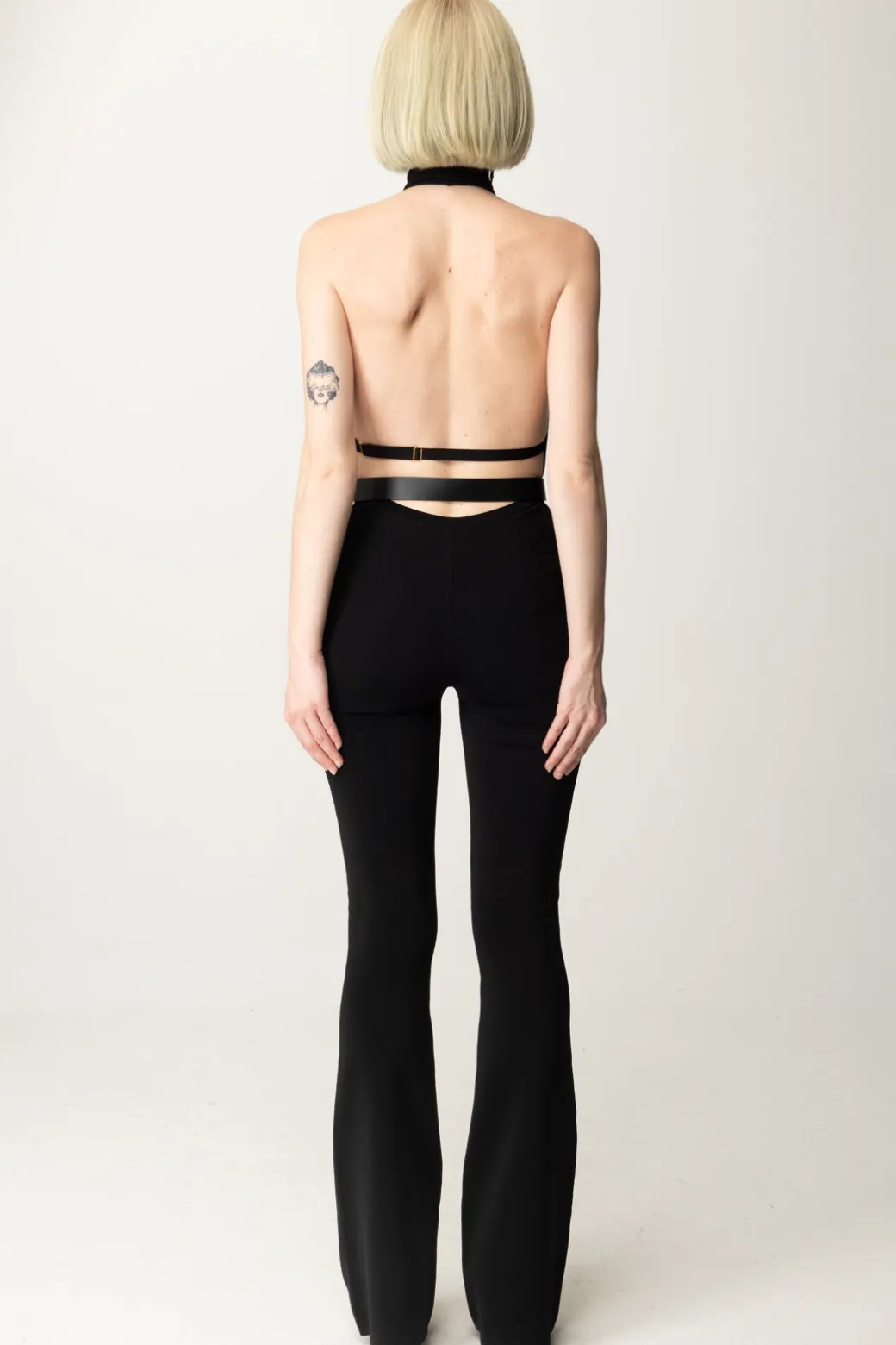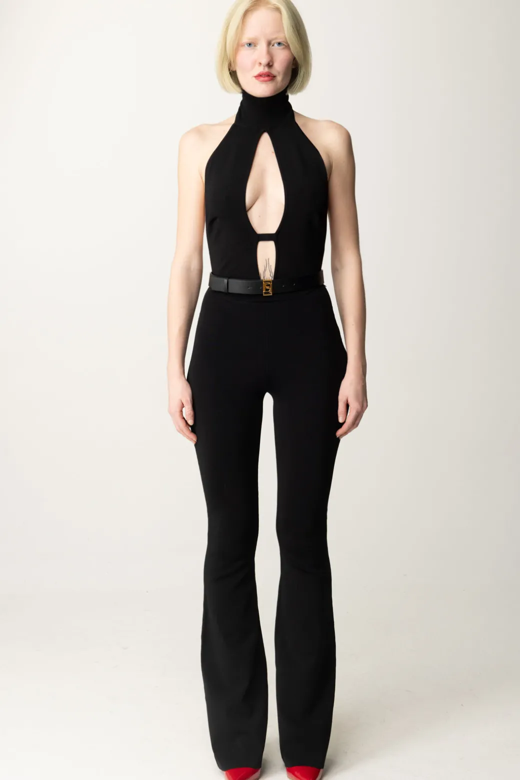 Questa Tuta Elisabetta Franchi realizzata in viscosa lucida, è caratterizzata un collo alto con con scollo all’americana e audaci cut-out che aggiungono un tocco sensuale al design. Il corpetto aderente si snoda in pantaloni leggermente svasati, creando un equilibrio chic. La cintura stringe la vita, esaltando la silhouette, perfetto per i party serali o occasioni dove la femminilità è un must.