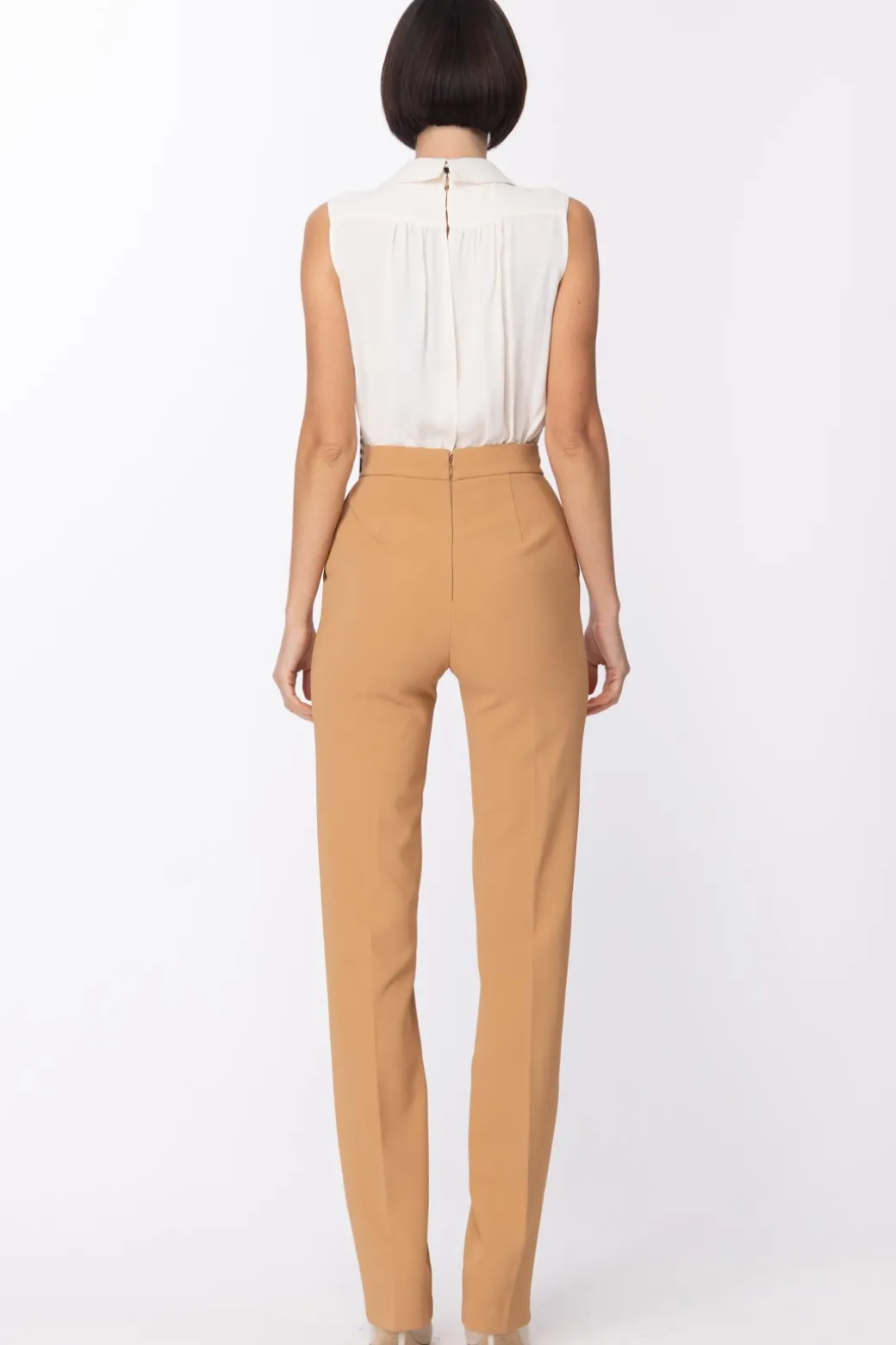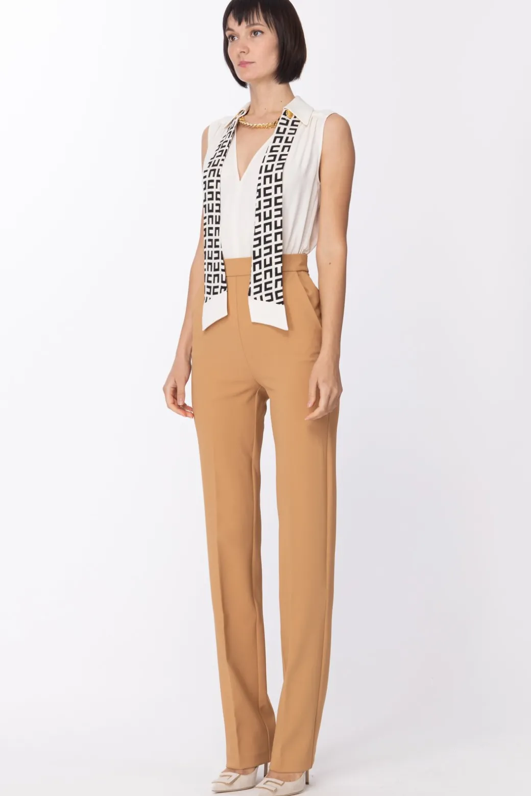 Elisabetta Franchi Tuta Lunga con Foulard e CatenaBURRO/CARAMELLO