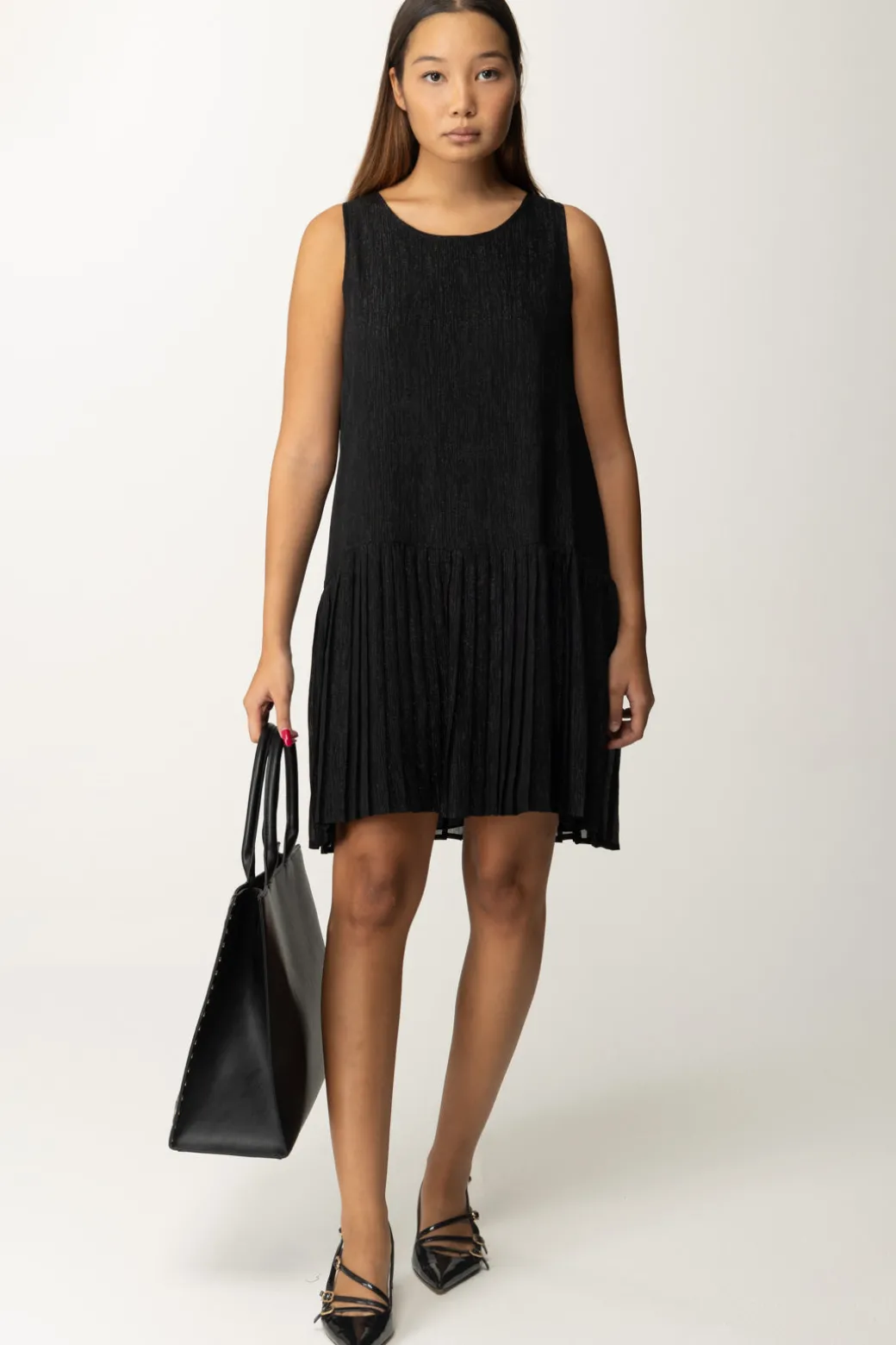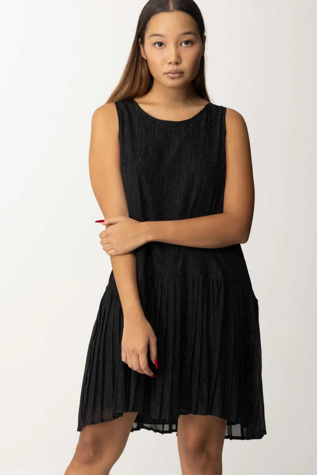 Miniabito Gaelle Parische combina eleganza discreta e comodità chic! Ha una silhouette morbida e dettagli plissettati sulla gonna. Perfetto con accessori dorati o argentati e sandali con tacco, è la scelta perfetta per una serata elegante.