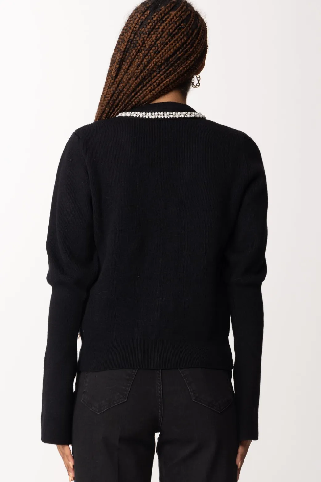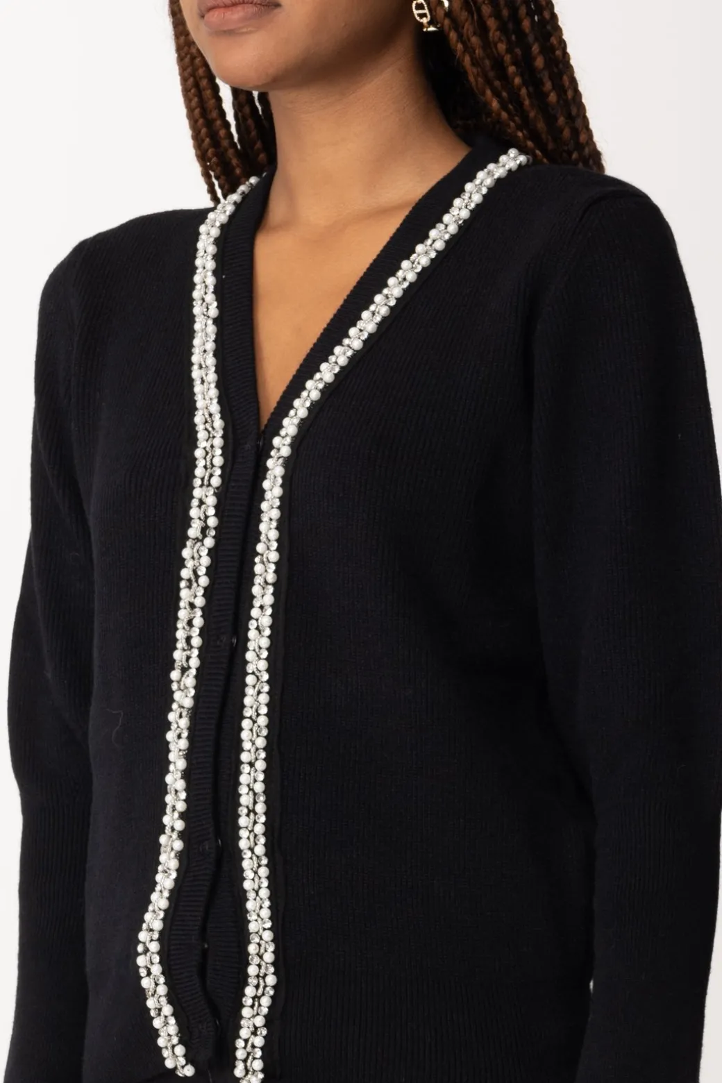 Gaëlle Paris Cardigan Corto con Strass e PerlineNERO